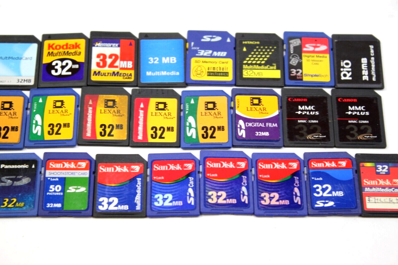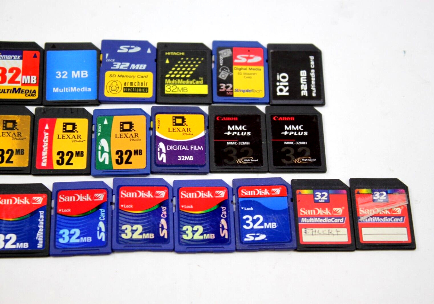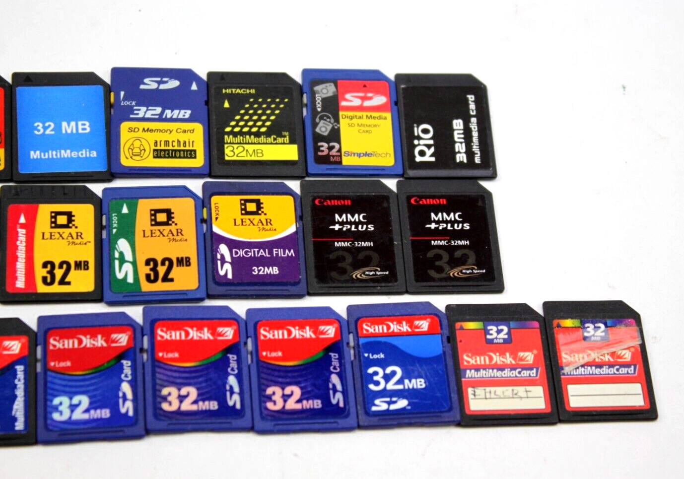 как выглядит Lot of 26 SD Memory Card 32MB Mixed Brands Camera Cards фото