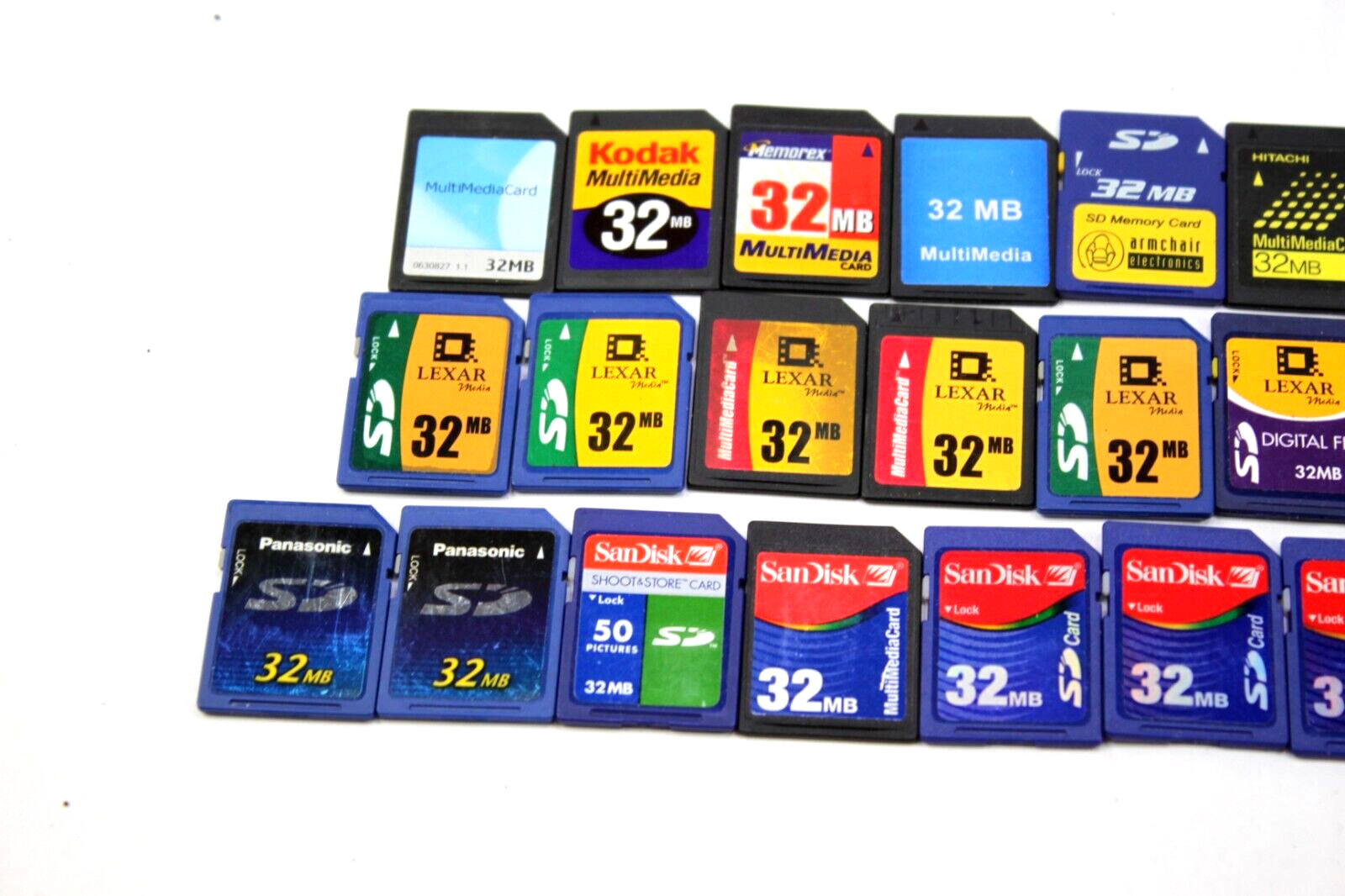 Lot of 26 SD Memory Card 32MB Mixed Brands Camera Cards