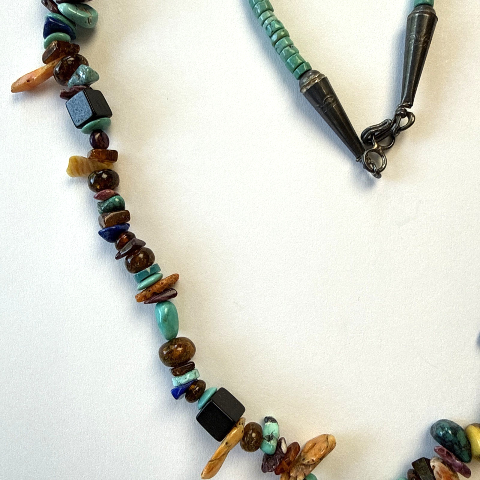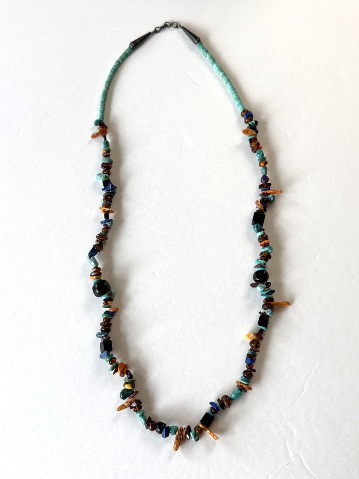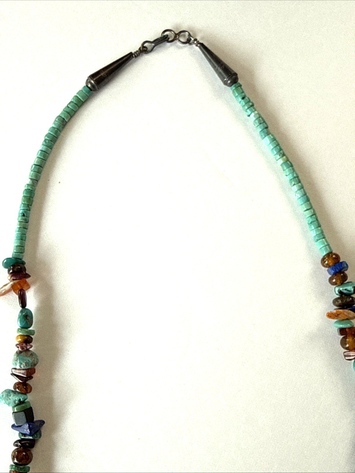 Beautiful Sterling Silver Turquoise Heishi Multicolored Stone Necklace 30
