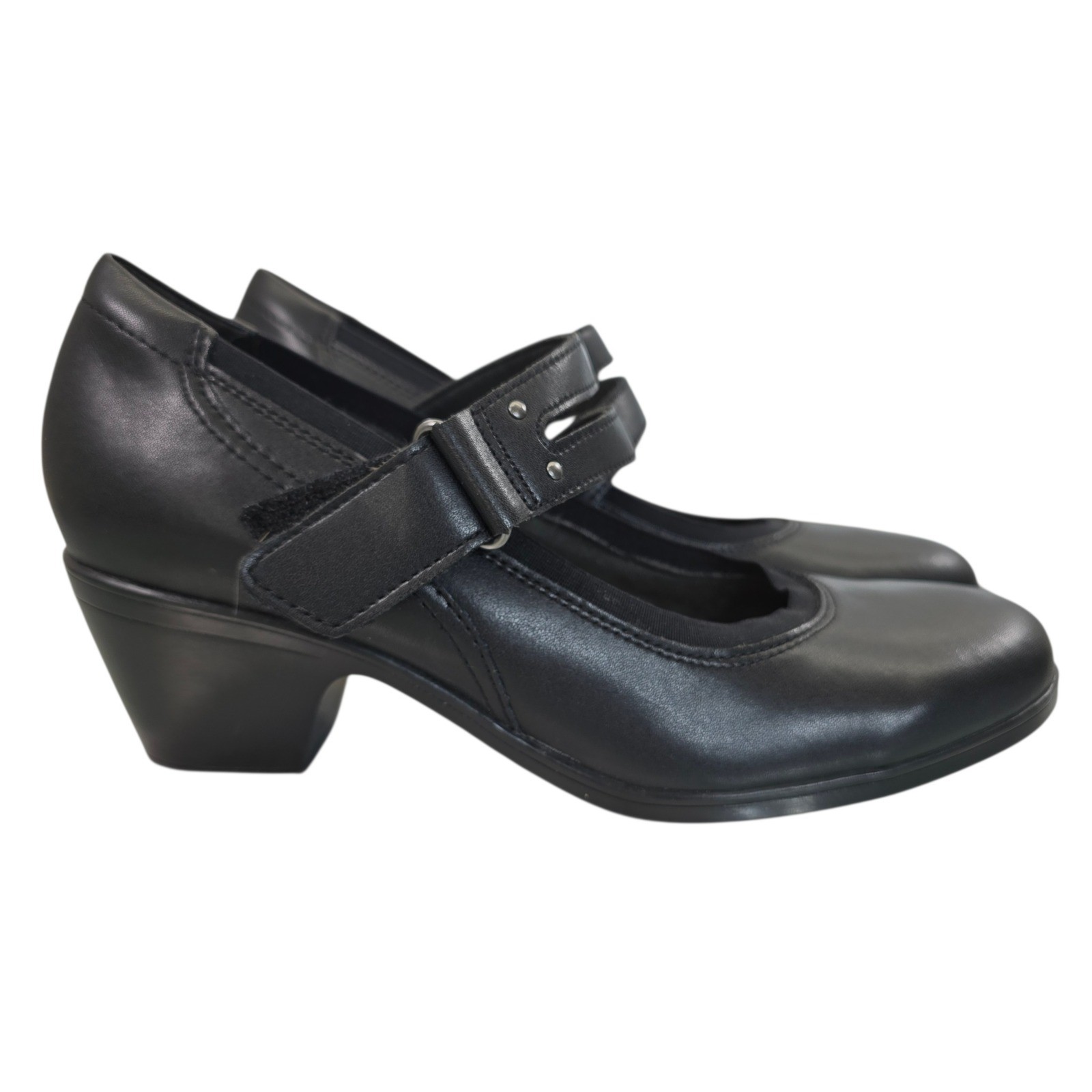как выглядит Clarks Collection Black Leather Mary Jane Block Heel Pumps Womens 9 261841294065 фото