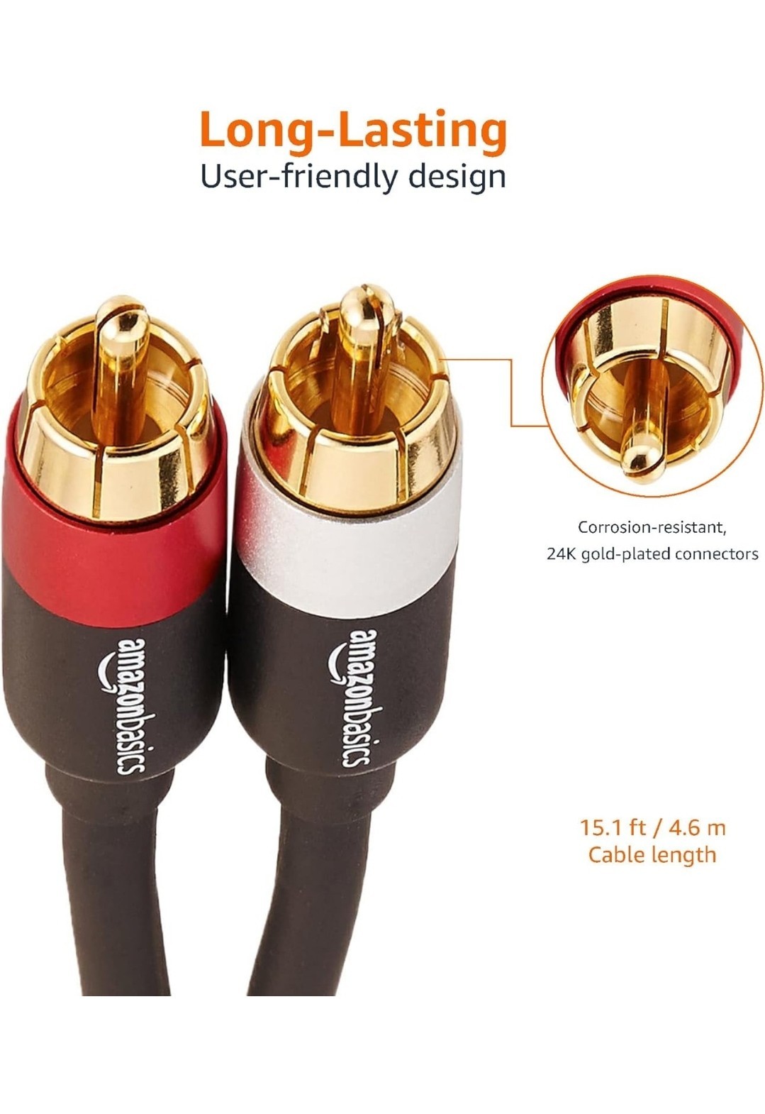 Amazon Basics 2-Male to 2-Male RCA Audio Stereo Subwoofer Cable 15 Feet 4.5 M