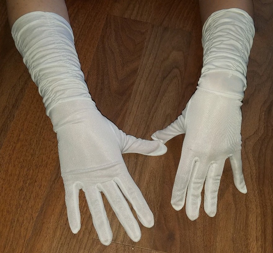 как выглядит Vtg Mid Length Ivory Ladies Dress Gloves Opera Princess Sheer Scrunch Small фото