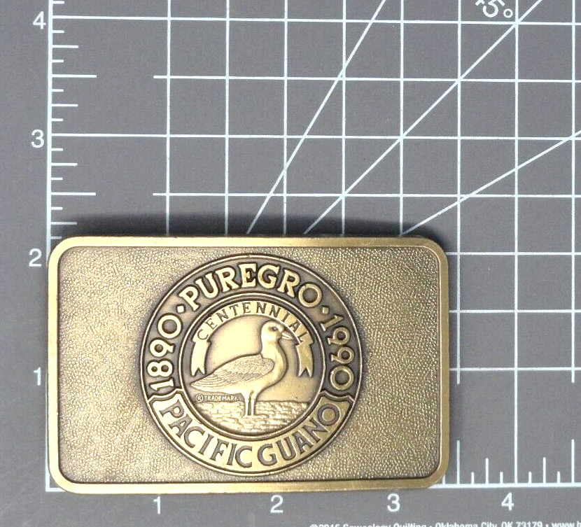 как выглядит Puregro 100 Yrs Belt Buckle Pacific Guano 1890 1990 Seabird Logo Vtg 90s .B318 фото