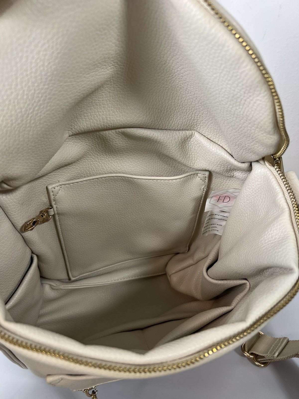 как выглядит Fawn Design Mini Backpack Diaper Bag Vegan Leather Cream Gold Hardware Dirty фото