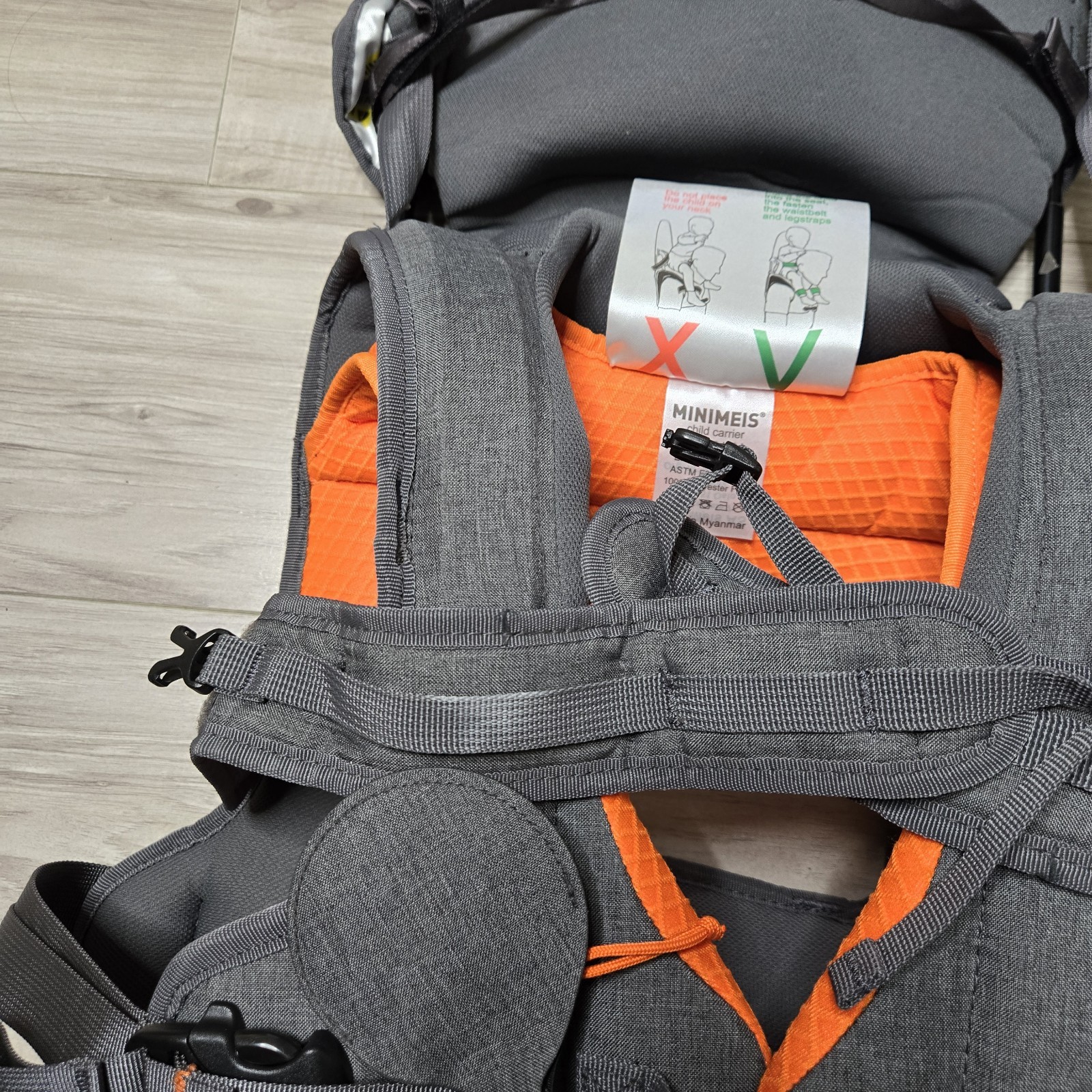 как выглядит Minimeis G4 Foldable Baby/Child/Toddler Shoulder Carrier Grey/Orange 6m- 4Y Max фото