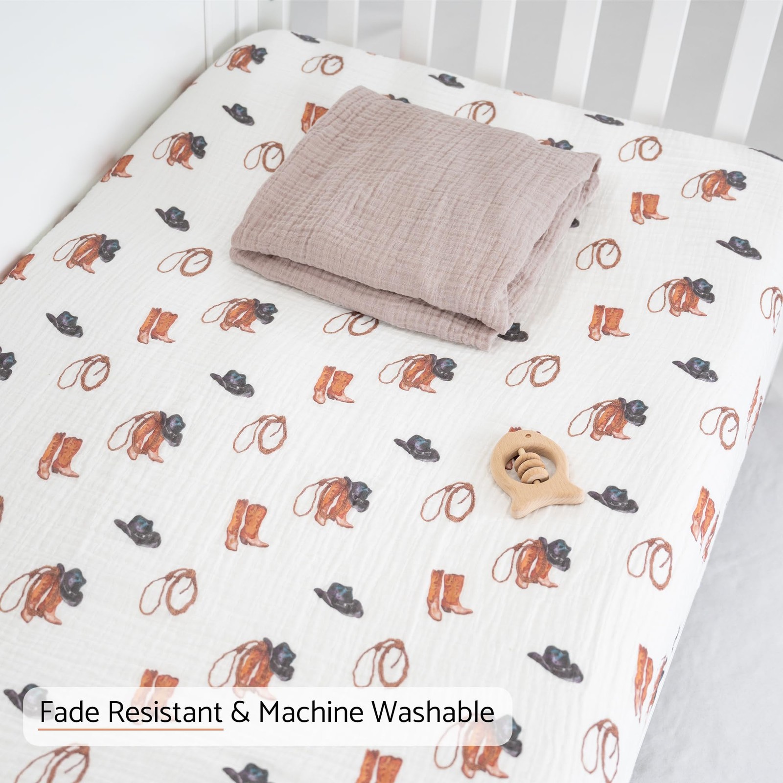 Cowboy Solid Tan Cotton Muslin Fitted Baby Crib Sheets Fits 52x28 Inch 2 PCS