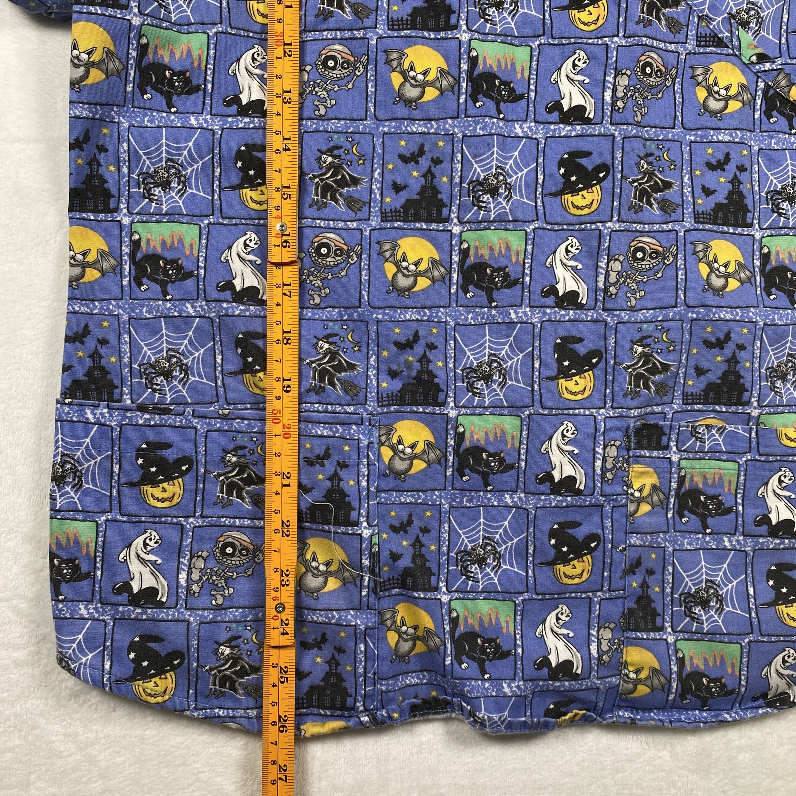 как выглядит Melrose Womens Halloween Scrub Top Blue Size Medium Graphic Cartoon Spooky Print фото