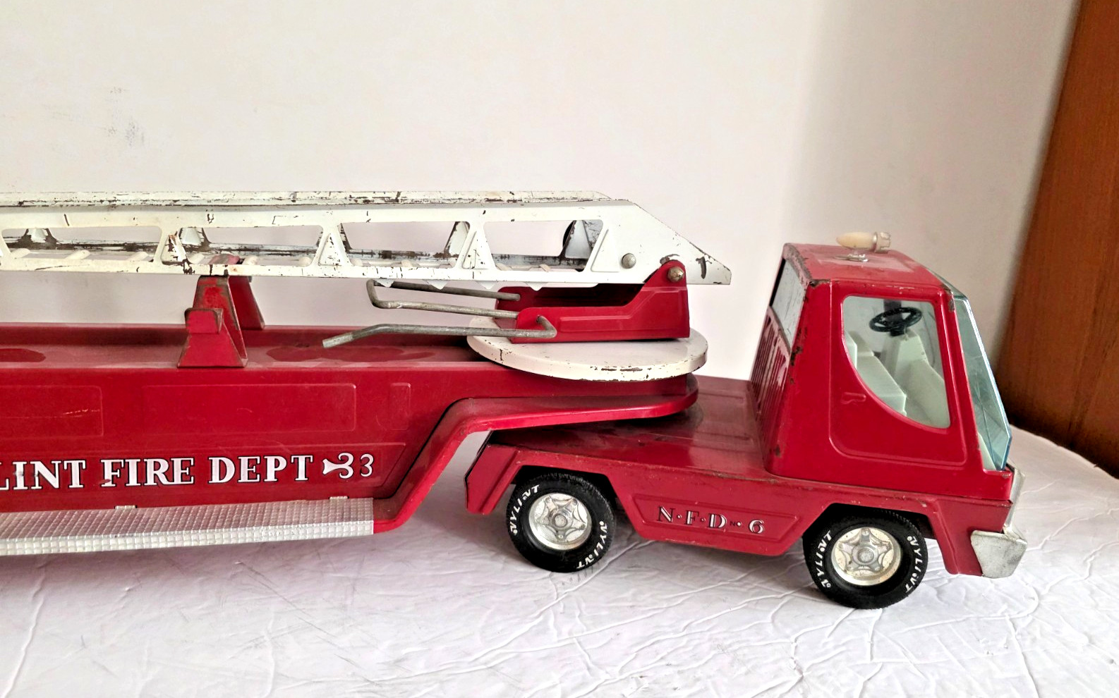 Vintage NYLINT Fire Department Hook And Ladder Truck 33 Pressed Steel 1960s