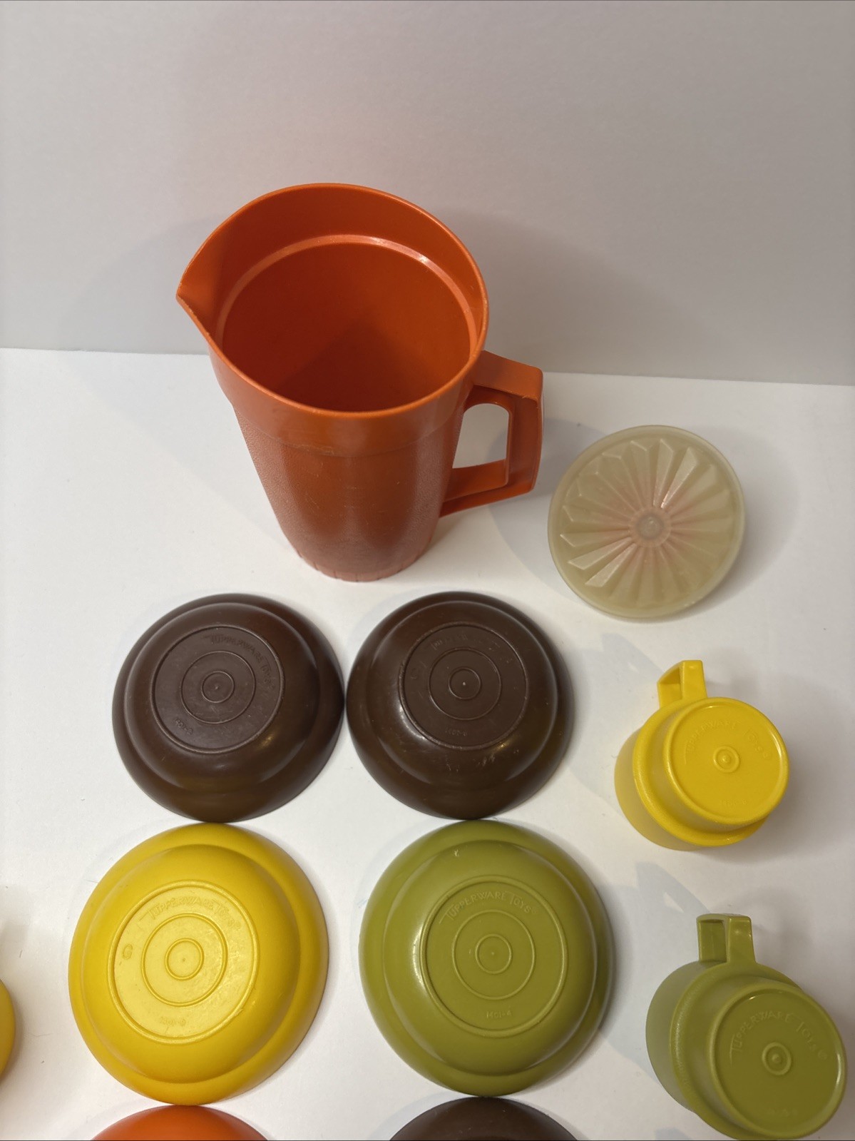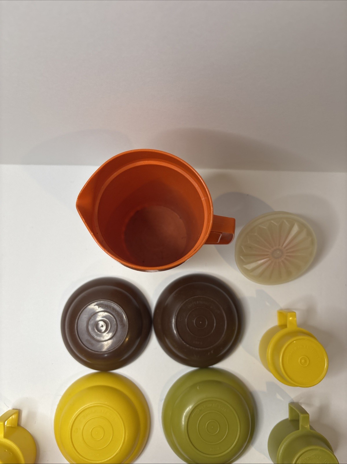 Vintage Tupperware Miniature Pitcher, 5 Cups, 6 Bowls Used. 1970 s