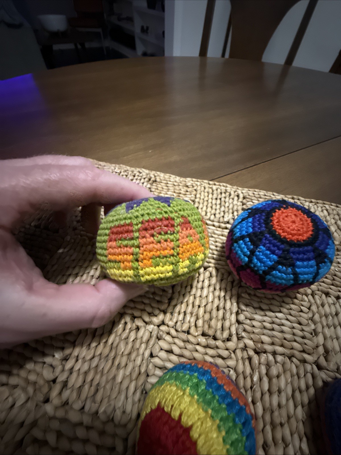 как выглядит Vintage Knitted Hacky Sack Multi-Colored Footbag 1990s Lot Of 4 фото