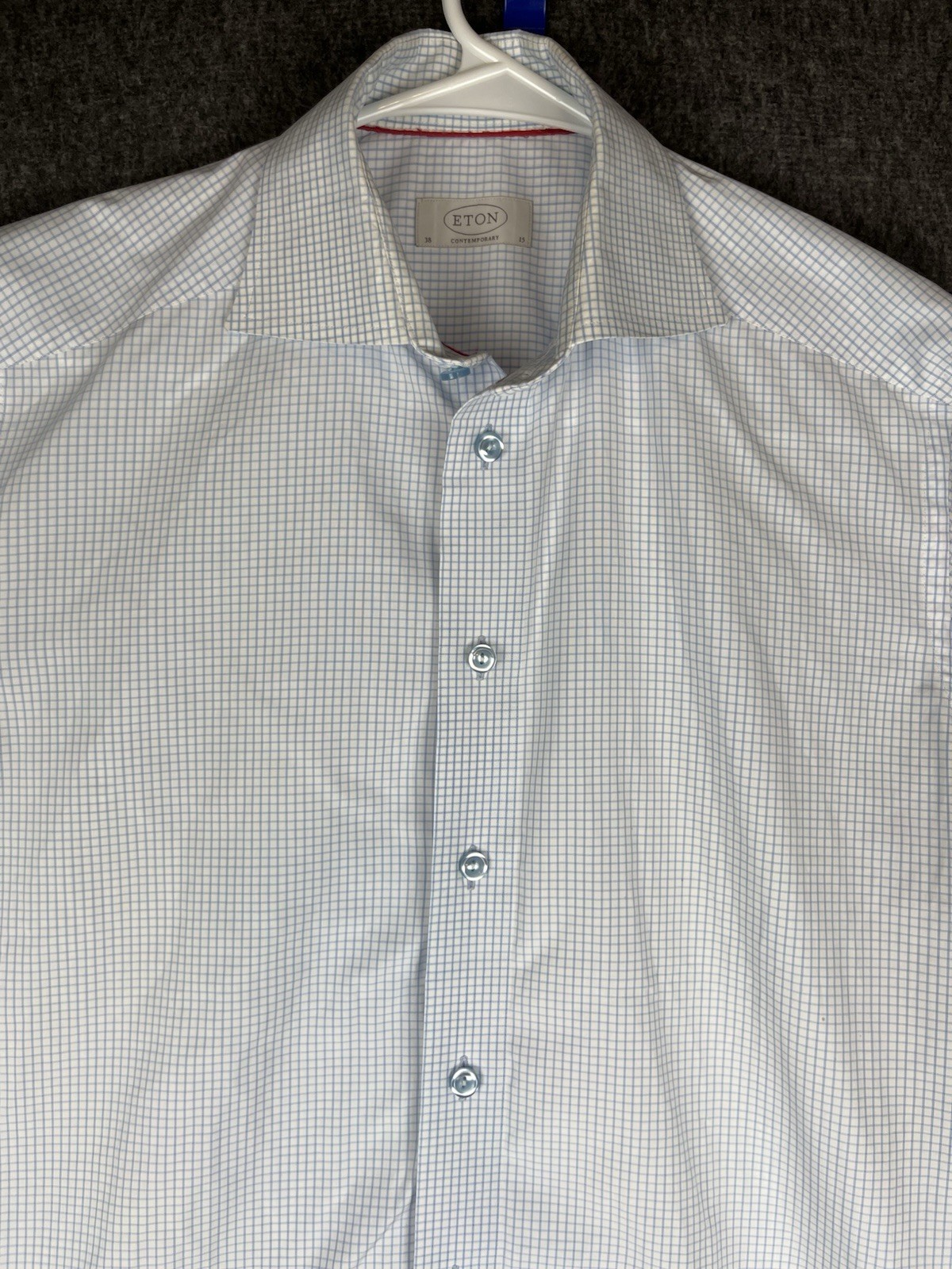 как выглядит Eton Contemporary Shirt Mens 38/15 Blue Micro Check Long Sleeve Button Up фото