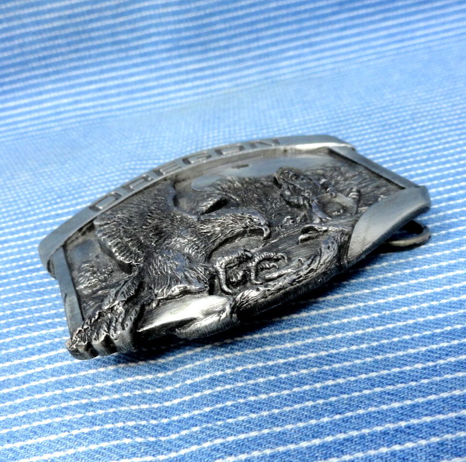 Oregon Western Frontier Prospector Eagle Belt Buckle Vtg 80s Siskiyou .CPA526
