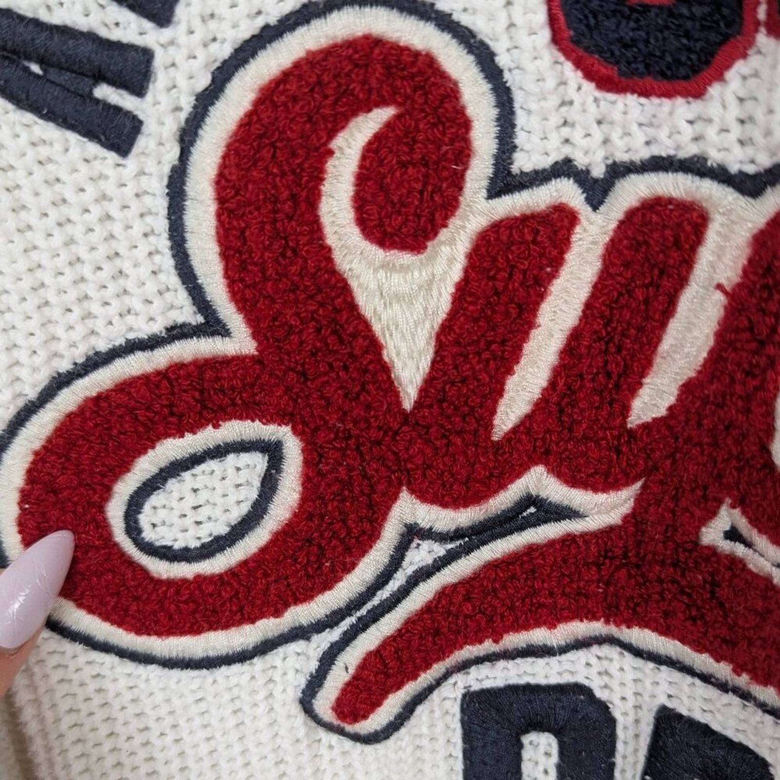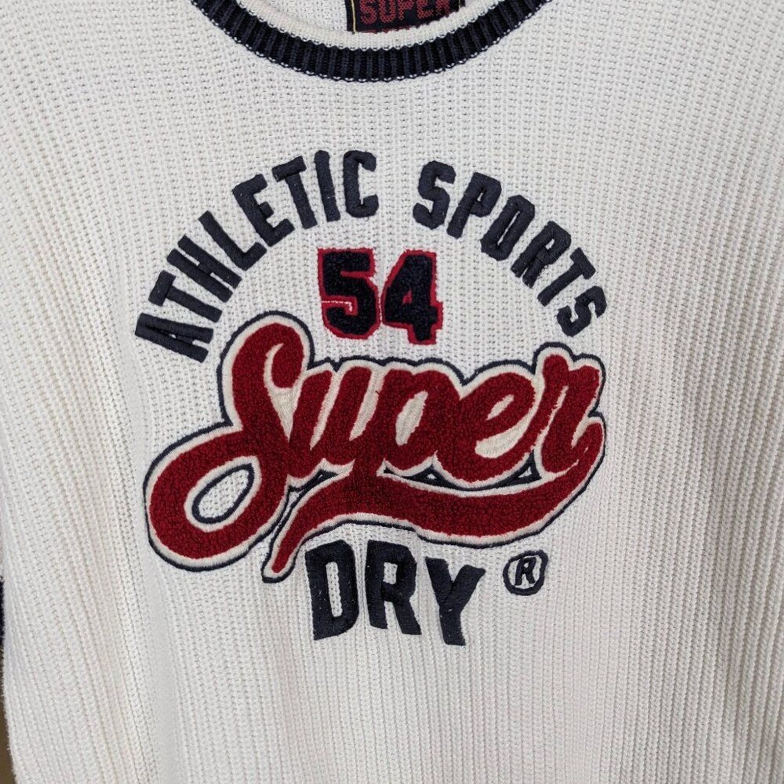 как выглядит Superdry White Athletic Sports Knit Sweater Size US 10 фото
