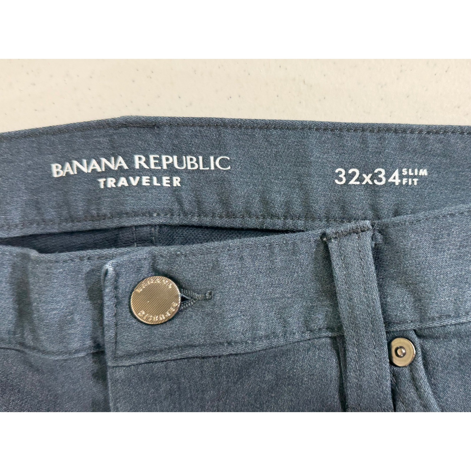 как выглядит Banana Republic Traveler Pants 32x34 Heathered Navy Blue Slim Fit Mid Rise READ фото