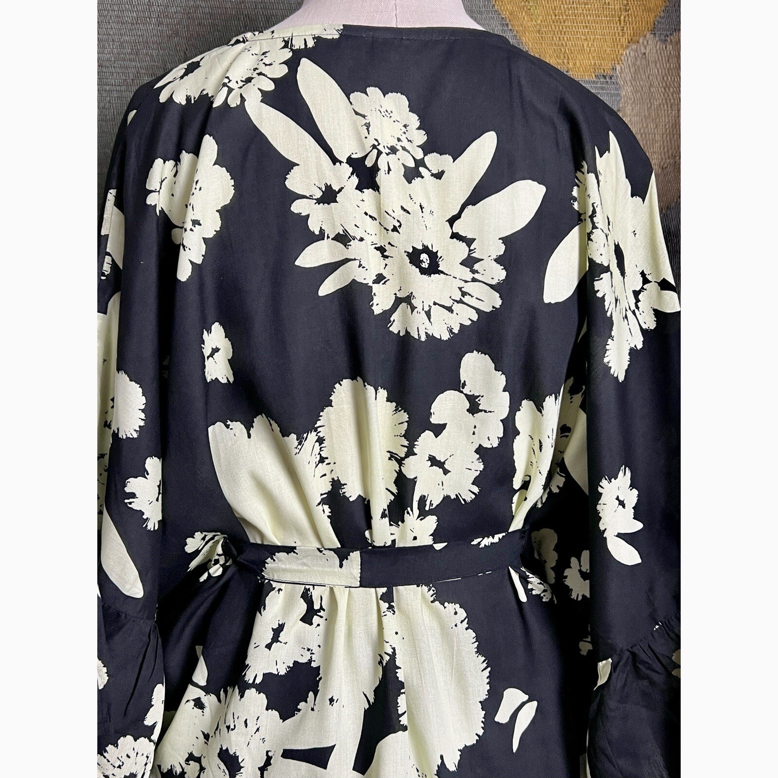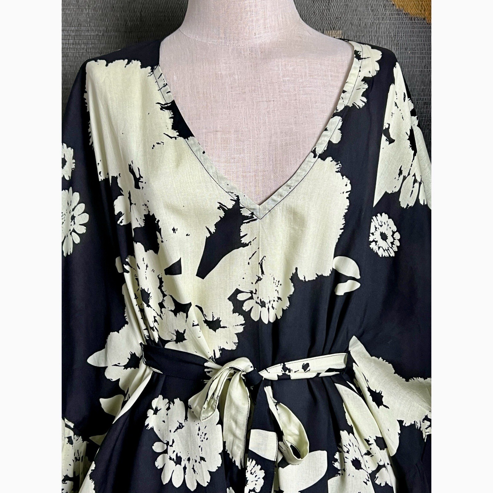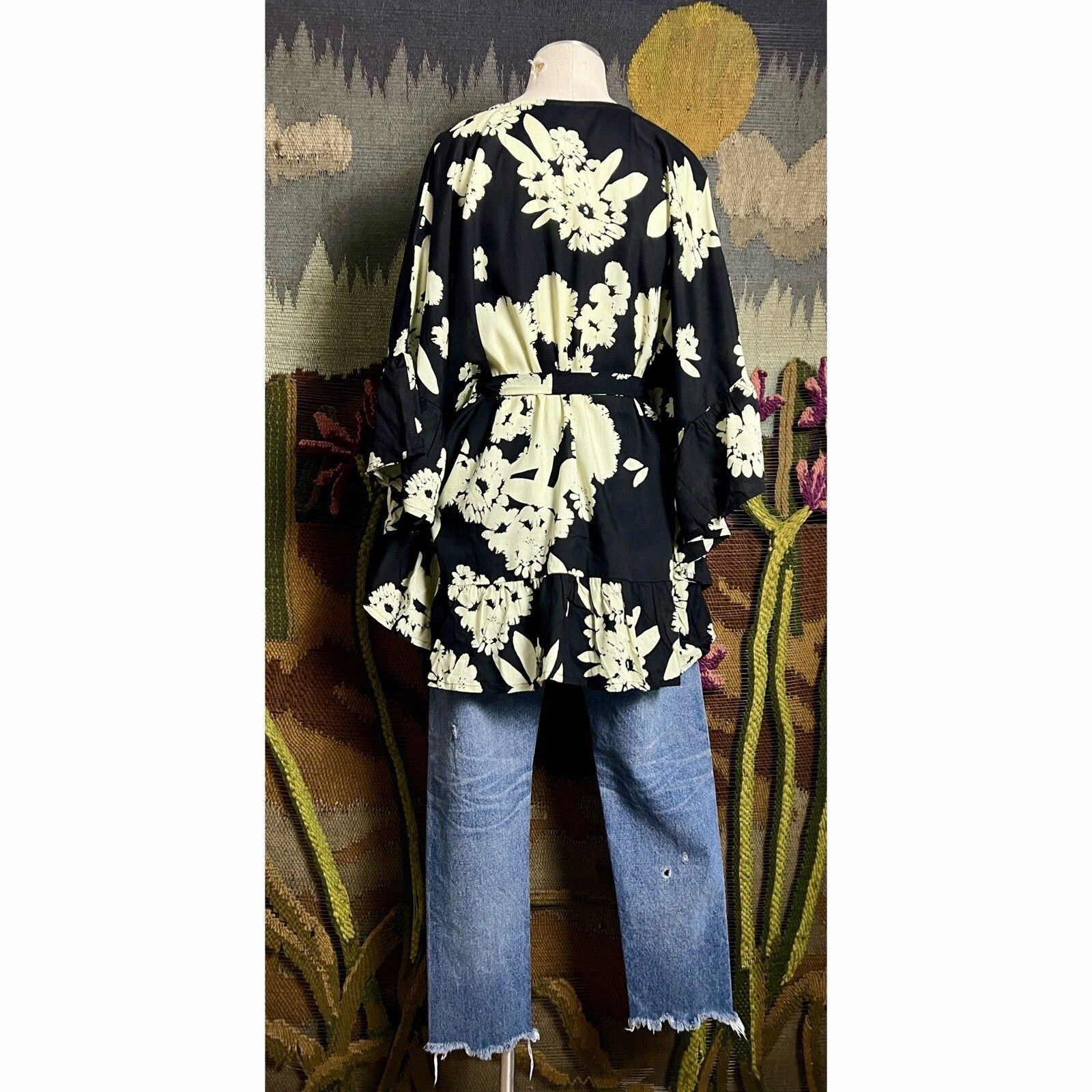 как выглядит Anthropologie Bel Kazan Black Floral Ruffle Kaftan Caftan фото