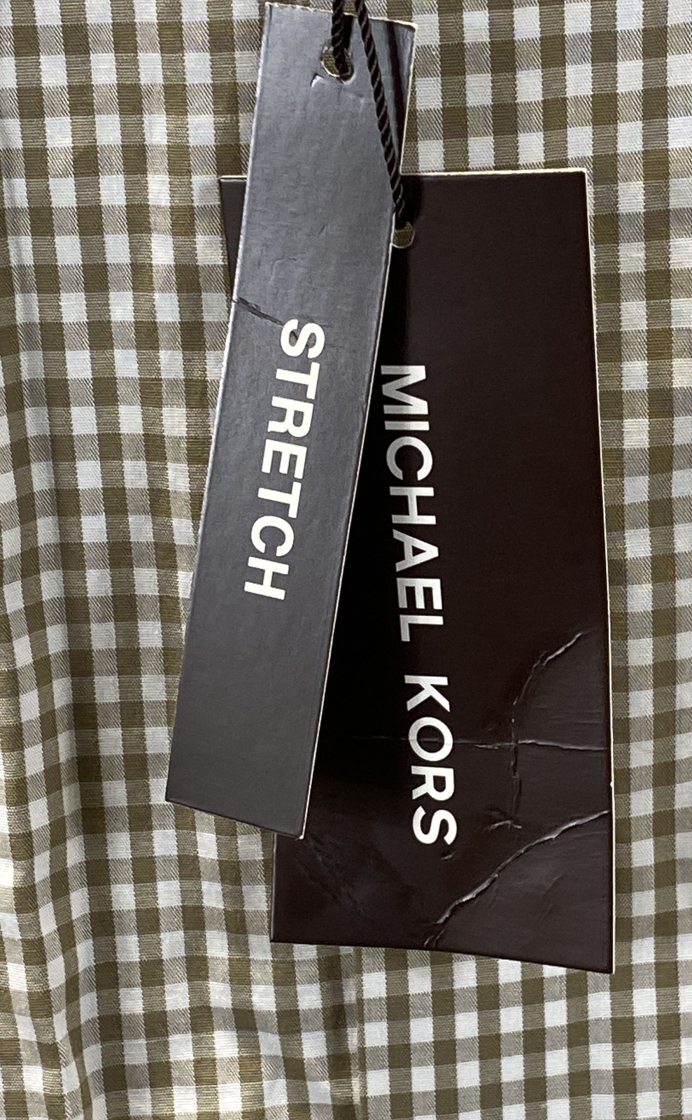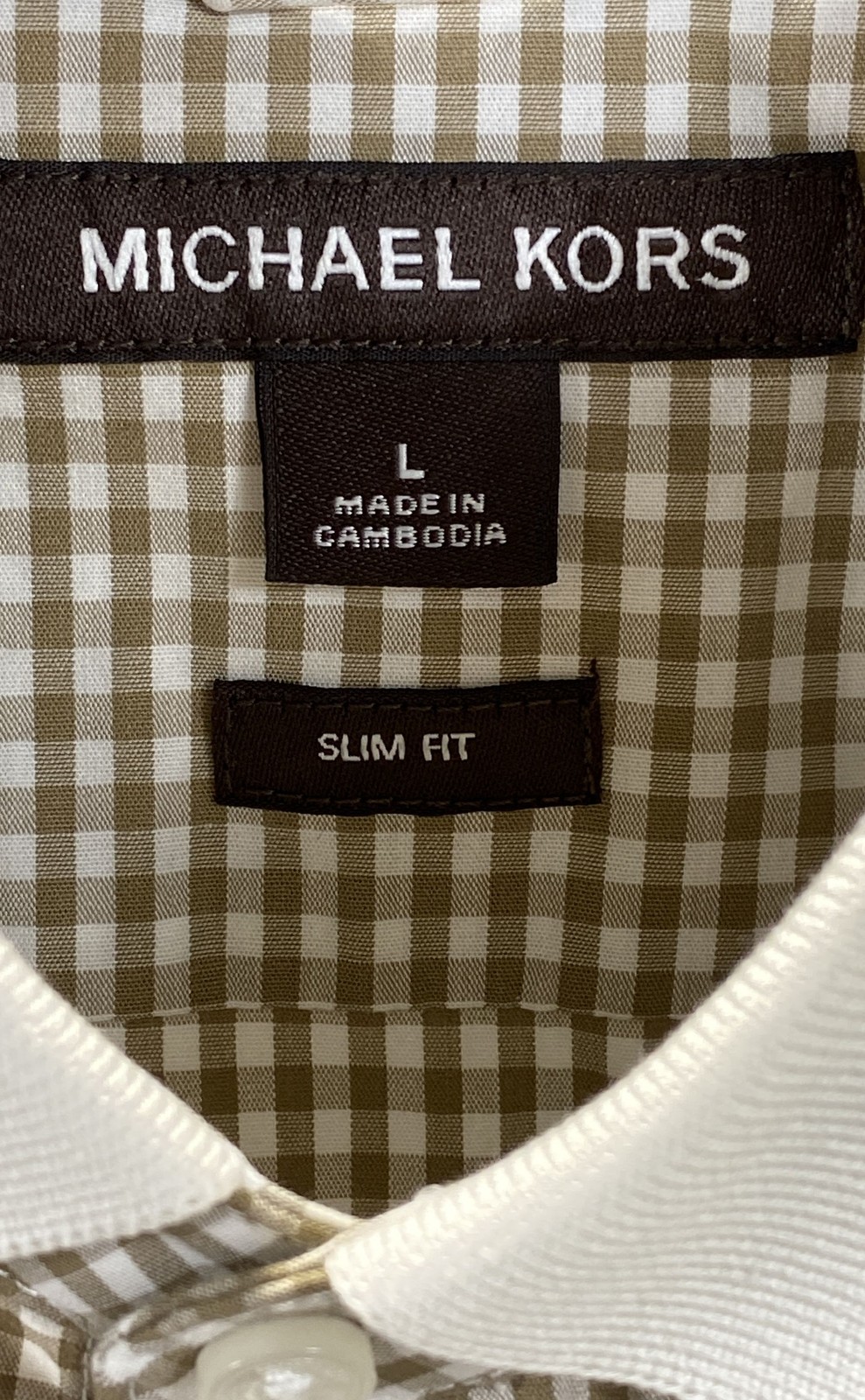 Michael Kors Men's NWT Gingham Button Up Shirt Sage Olive Slim Fit Stretch L