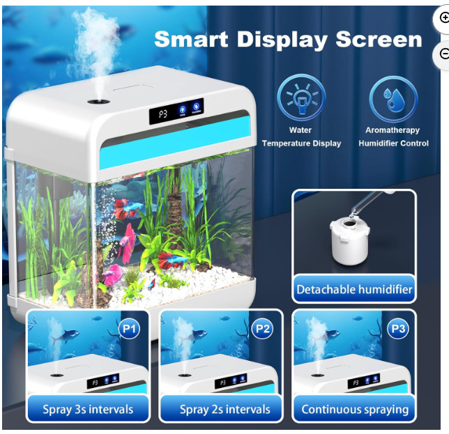 Fish Tank Aquarium 2.2 Gallon with Humidifier 7 Color Auto-Looping Light White