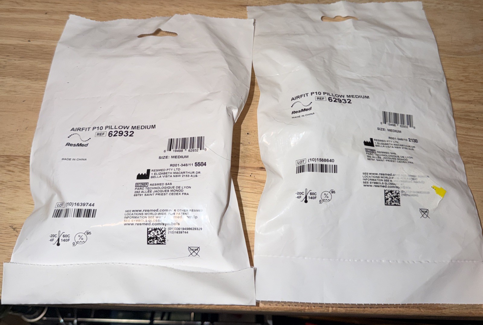 Lot of 2 New ResMed AirFit P10 Nasal Pillow Medium 62932 Factory Sealed