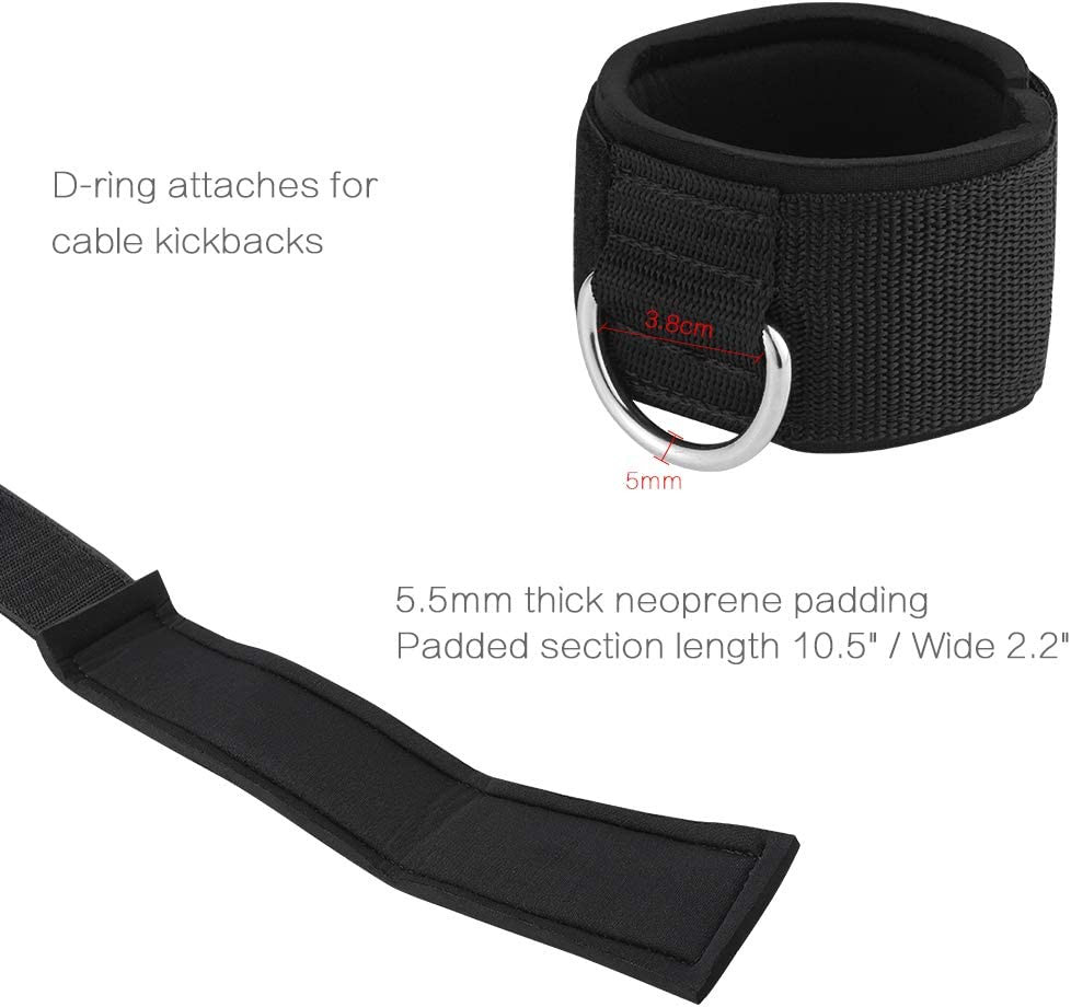 Ankle Wrist Cuffs Neoprene Padded Straps D-Ring Glute Kickback for Cable Legs E