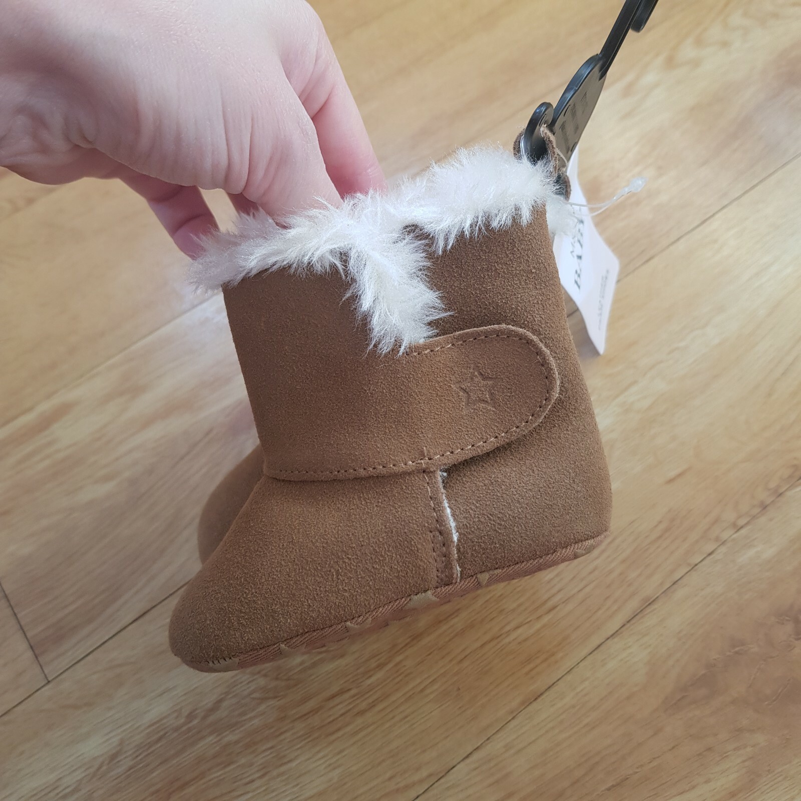 как выглядит Marks And Spencer Brown Boots Leather Pram Shoes Faux Fur Lined 3 - 6 Months фото