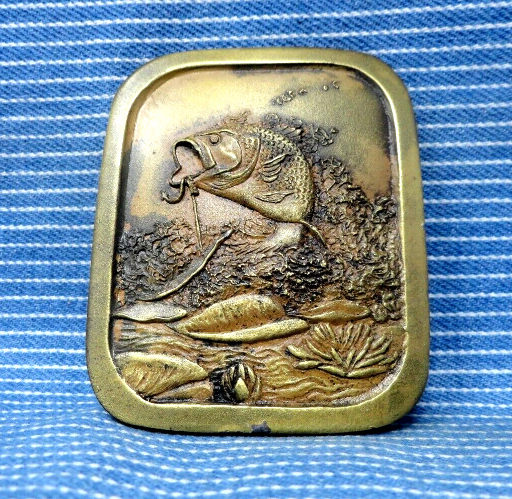 Bass Fishing Belt Buckle Angler Sportsman Vtg 70s Indiana Metal Craft .PCB934.A