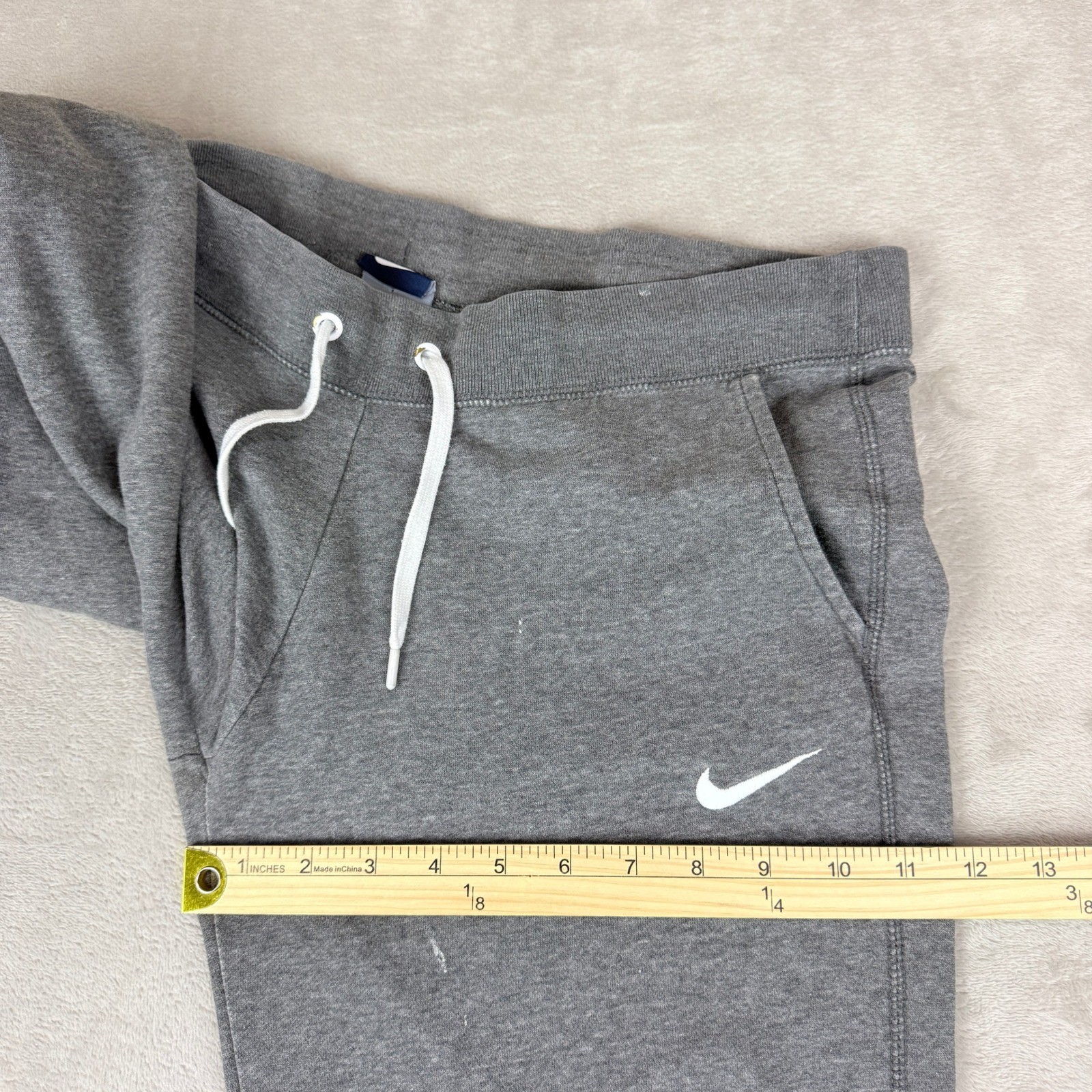 VTG Nike Sweatpants Women M Gray Fleece Straight Leg Swoosh Skater Street Y2K