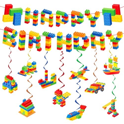 как выглядит Building Block Birthday Party Decorations Building Block Happy Birthday Banner фото