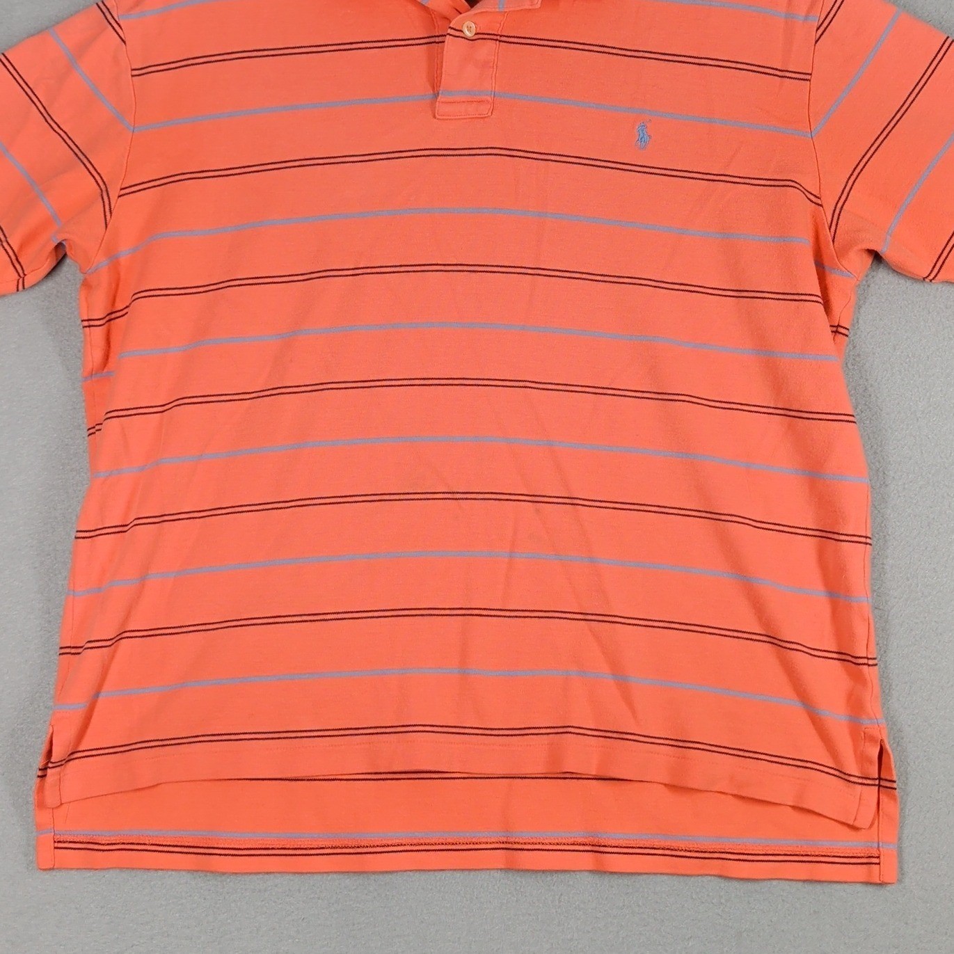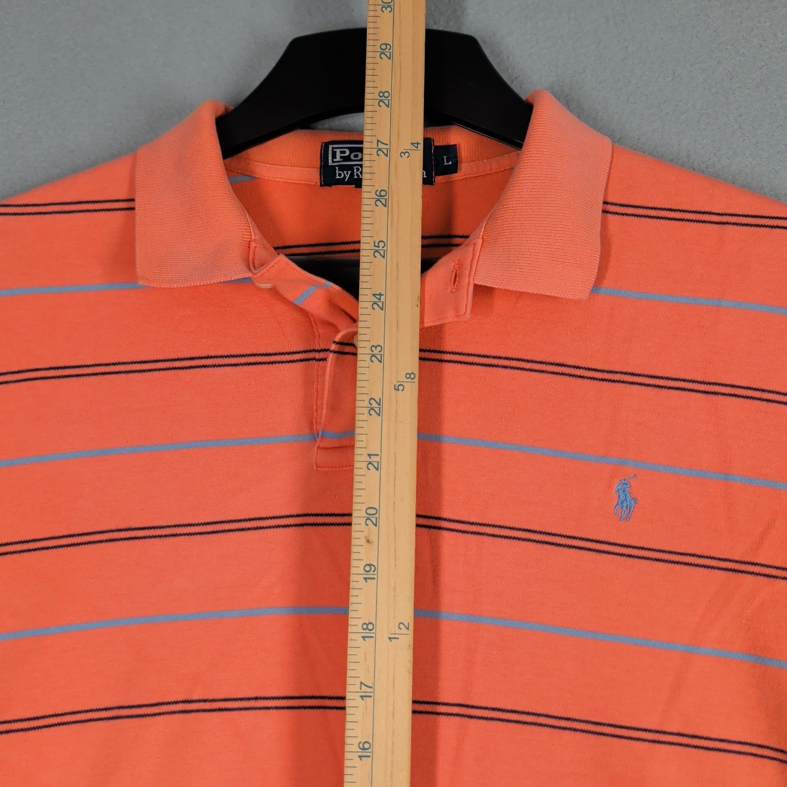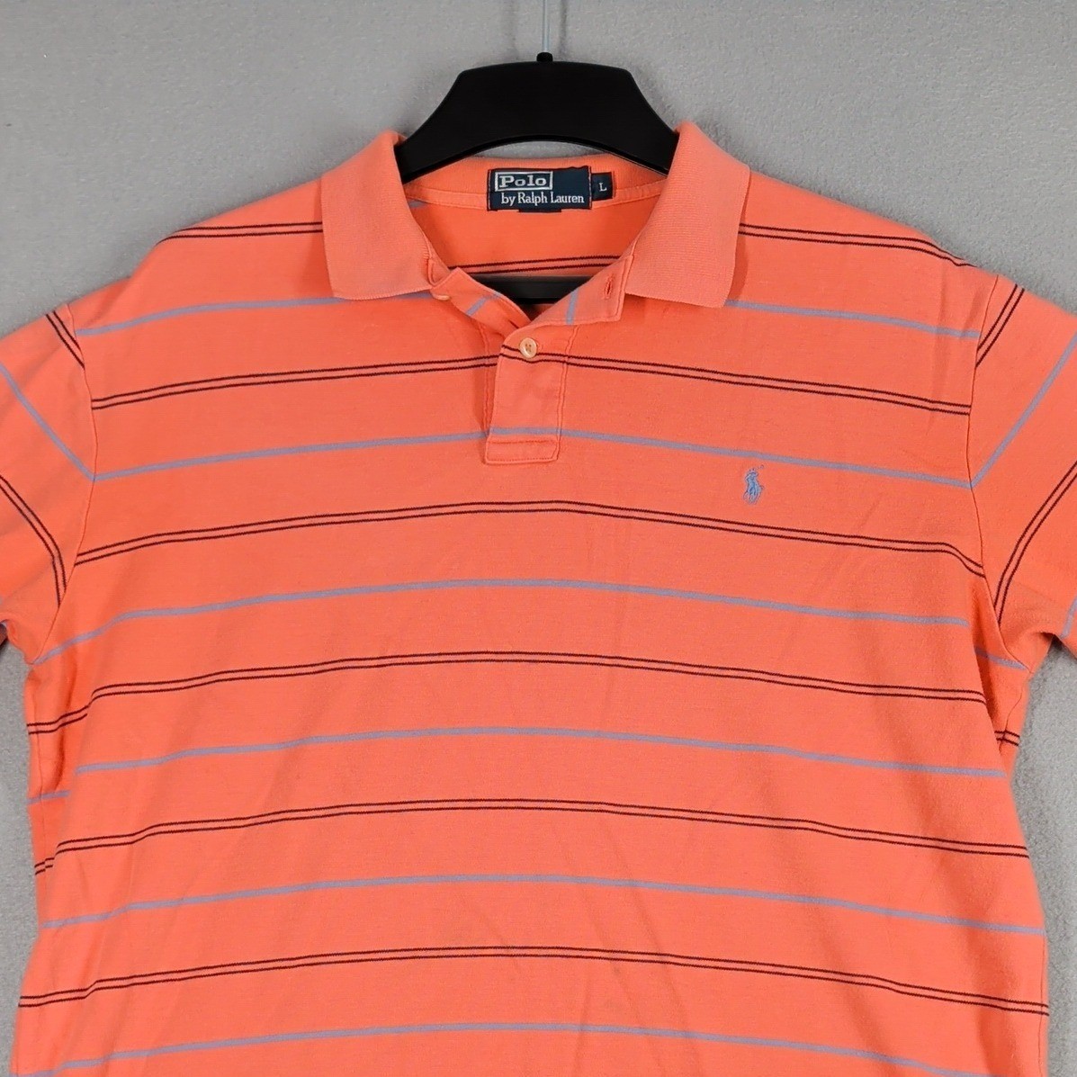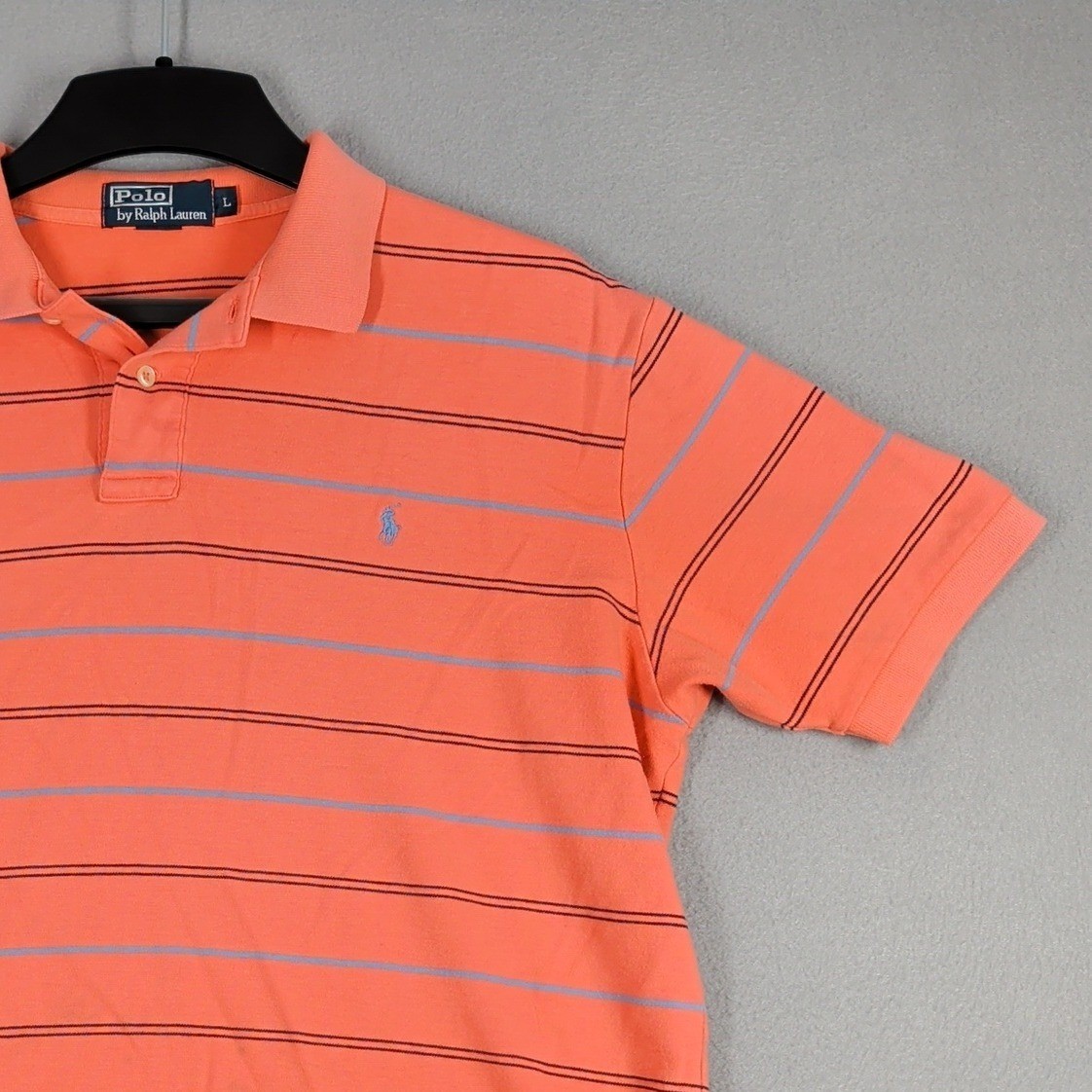 Polo Ralph Lauren Polo Shirt Mens L Orange Striped Cotton Short Sleeve
