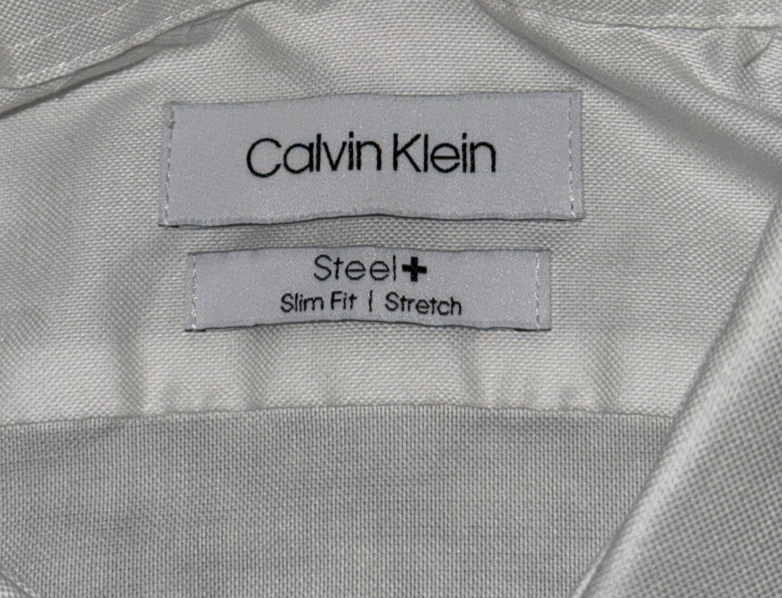 Calvin Klein Mens Slim Fit White Dress Shirt Steel Stretch Size 16 34/35
