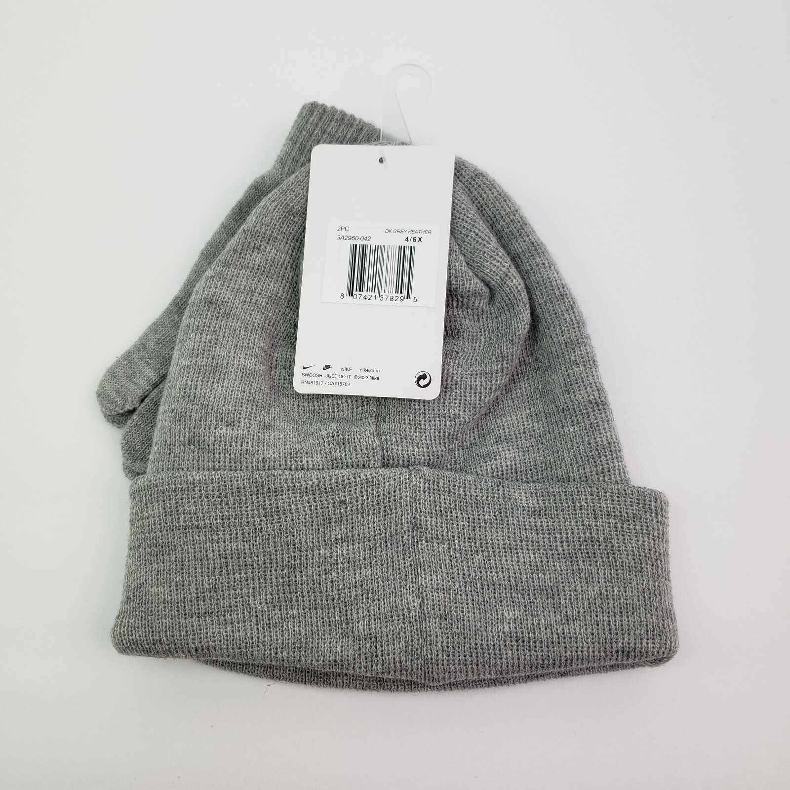 Nike Youth Size 8/20 Dark Grey Heather Warm Winter Beanie Hat Glove 2 Piece Set