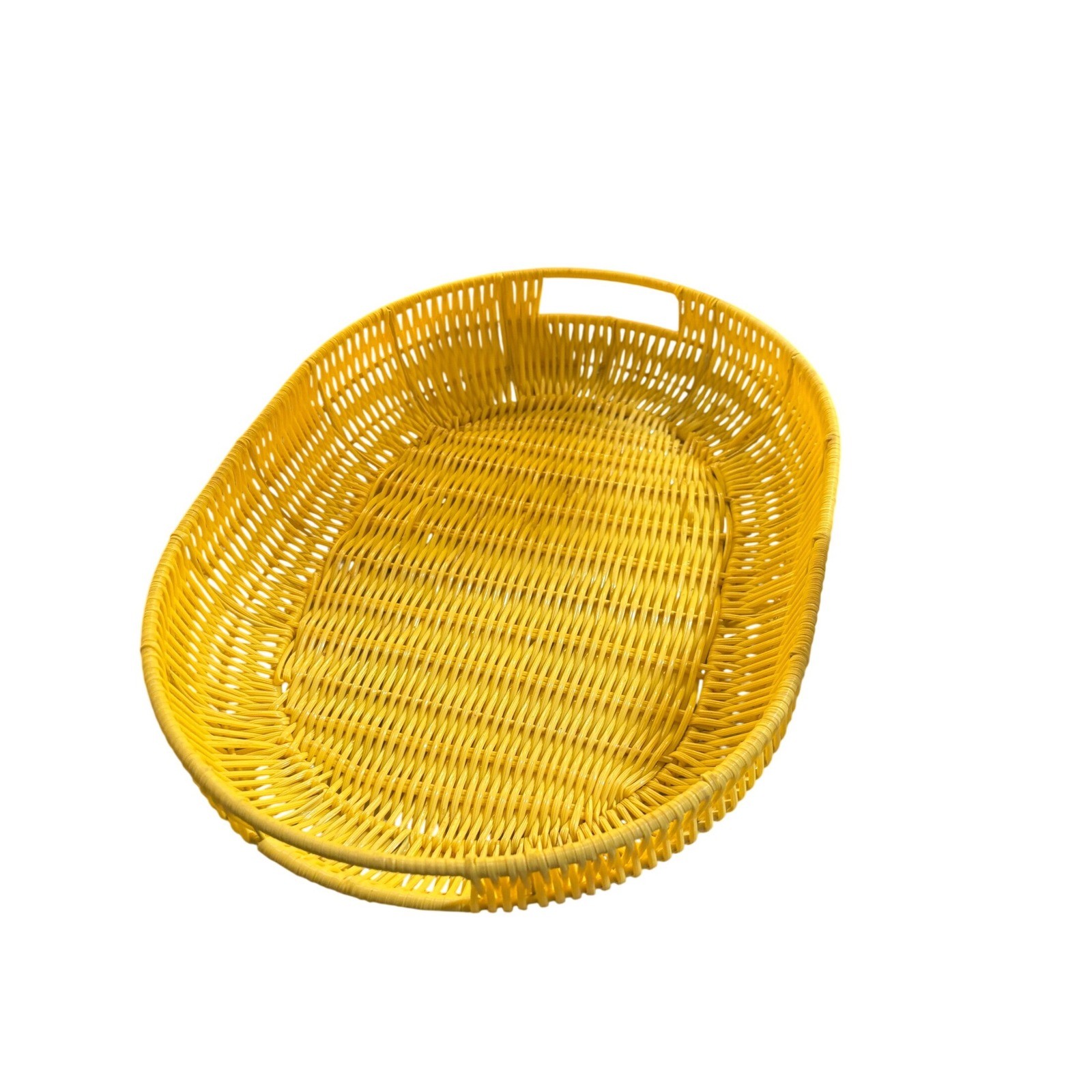 Vibrant Yellow Wicker Oval Serving Tray with Handles 16x12 Home Decor