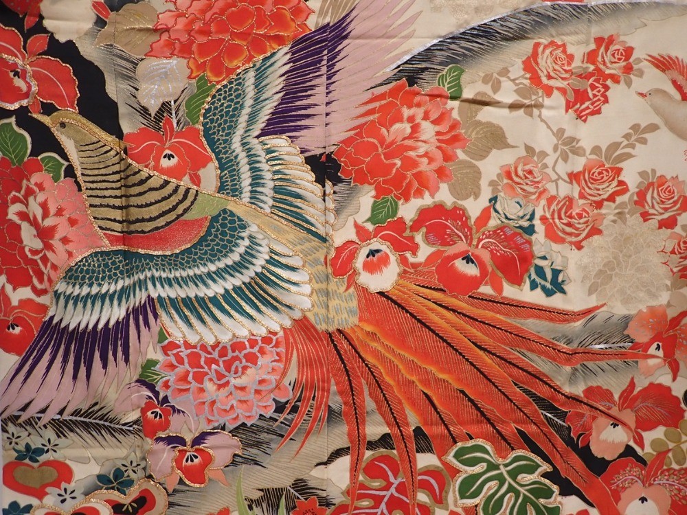 как выглядит 6210T09z1580 Vintage Japanese Kimono Silk FURISODE Pheasant Off-white фото