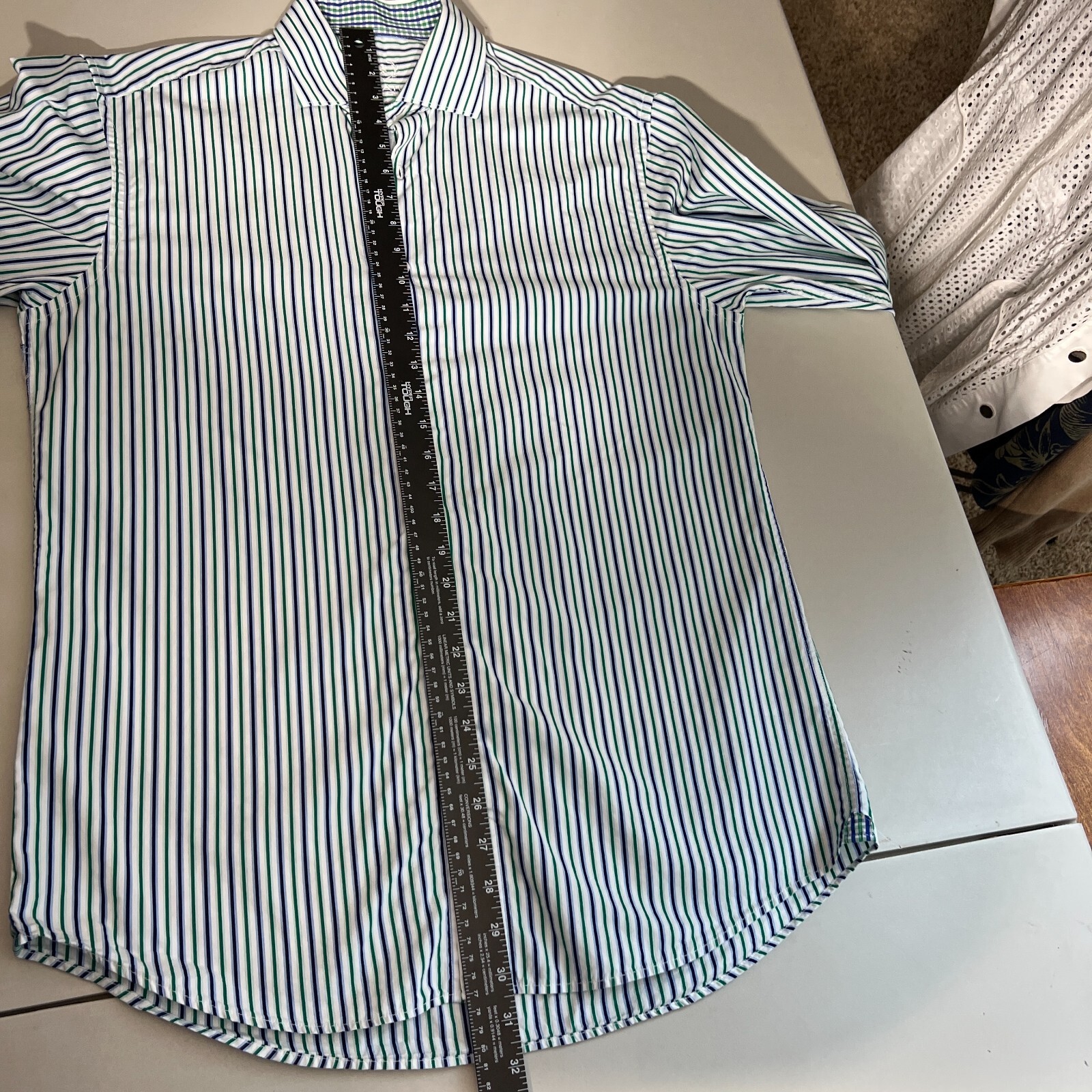 как выглядит Bugatchi Uomo Dress Shirt Mens 16 34/35 Blue Green Striped Long Sleeve Button Up фото