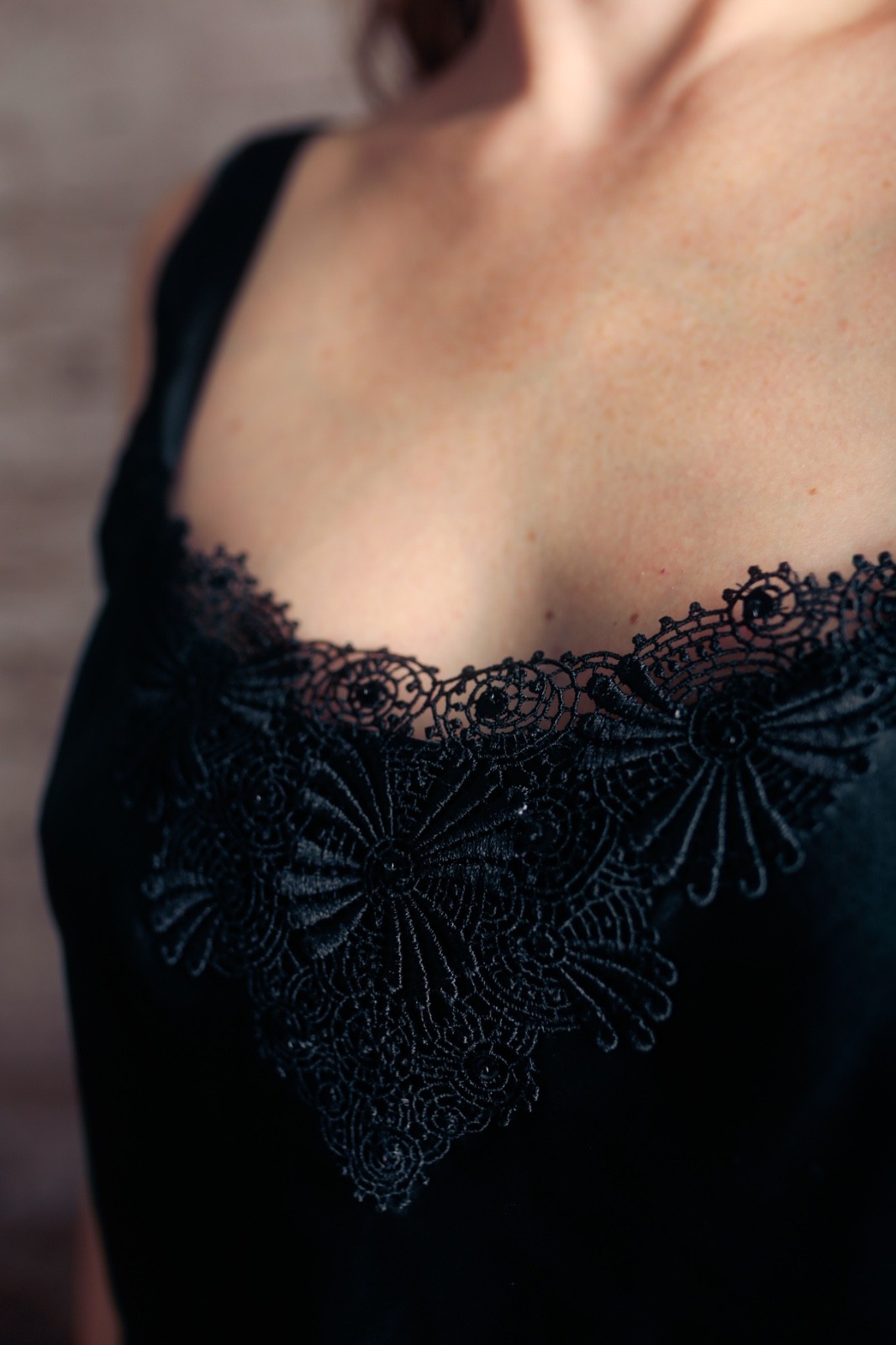 как выглядит Cinema Etoile Vintage Shiny Satin Lace Cami Camisole Large Black Burlesque фото
