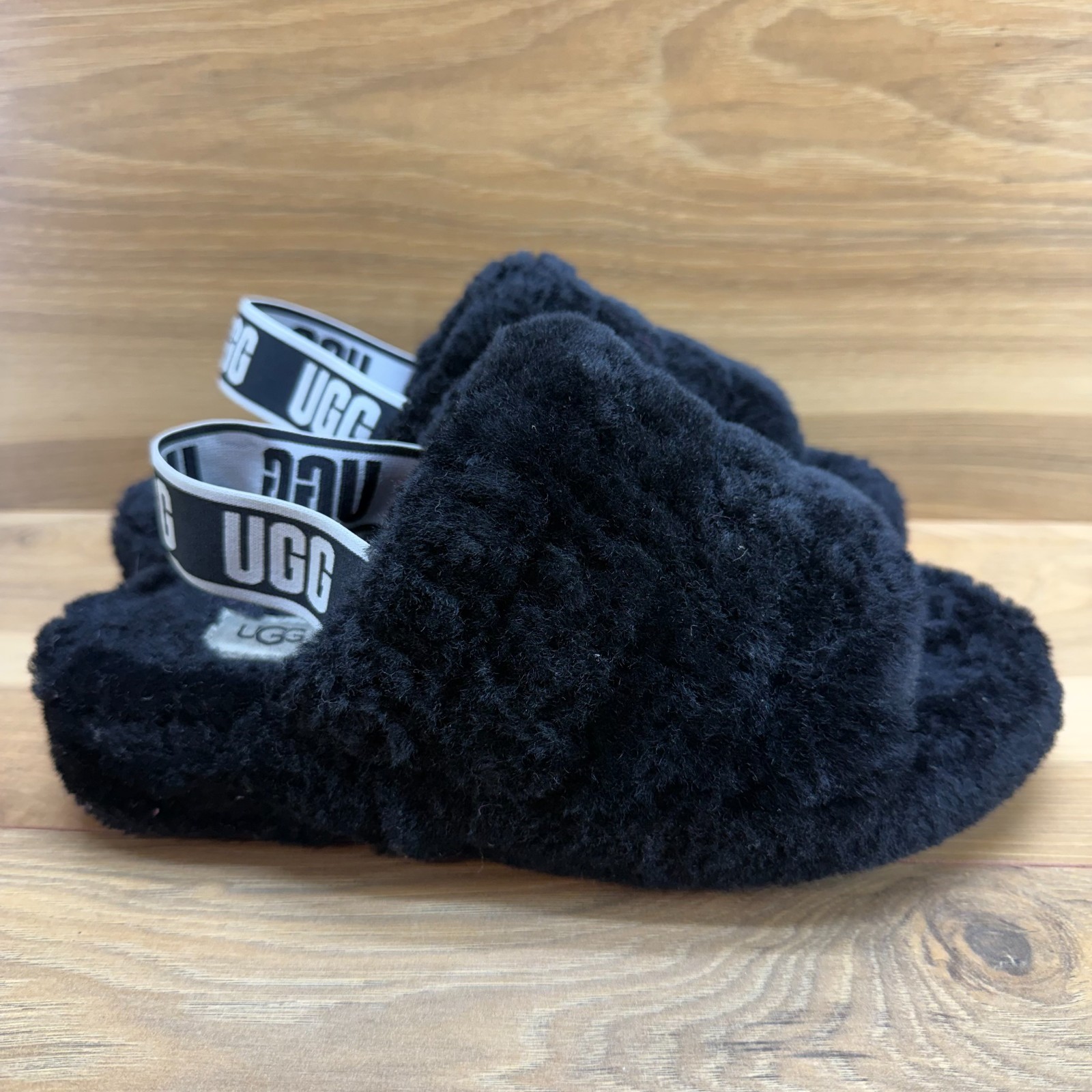 UGG Womens Slippers Size 8 Black Fluff Yeah Shearling Fur Slingback Slip On