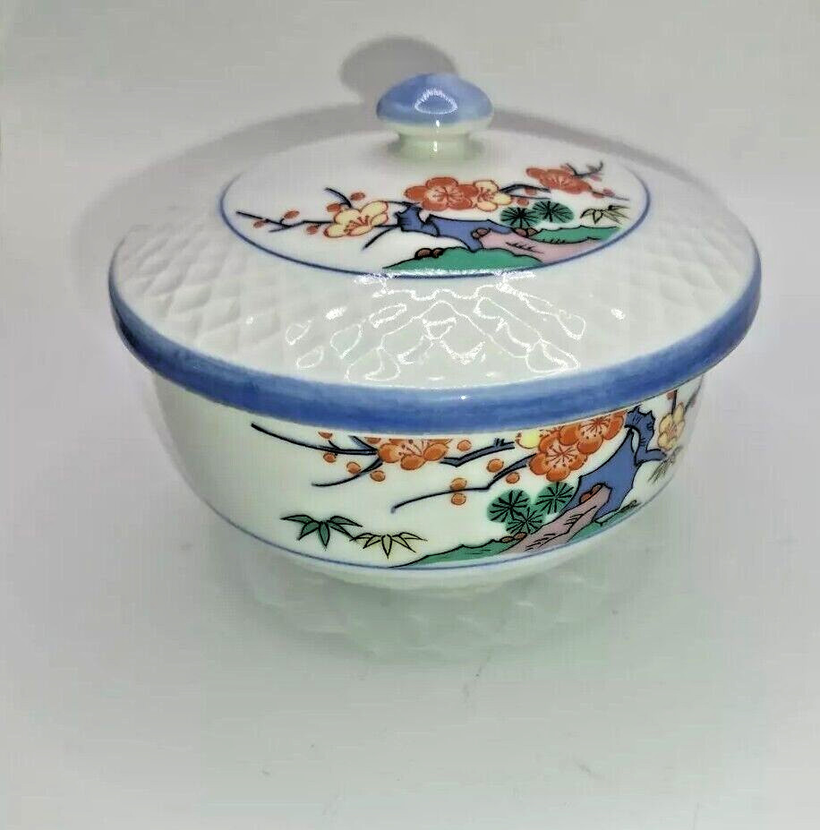 как выглядит 4 Vintage Japan Lids Yunomi Tea Cups Handpainted Blue Trimmed Porcelain Signed фото