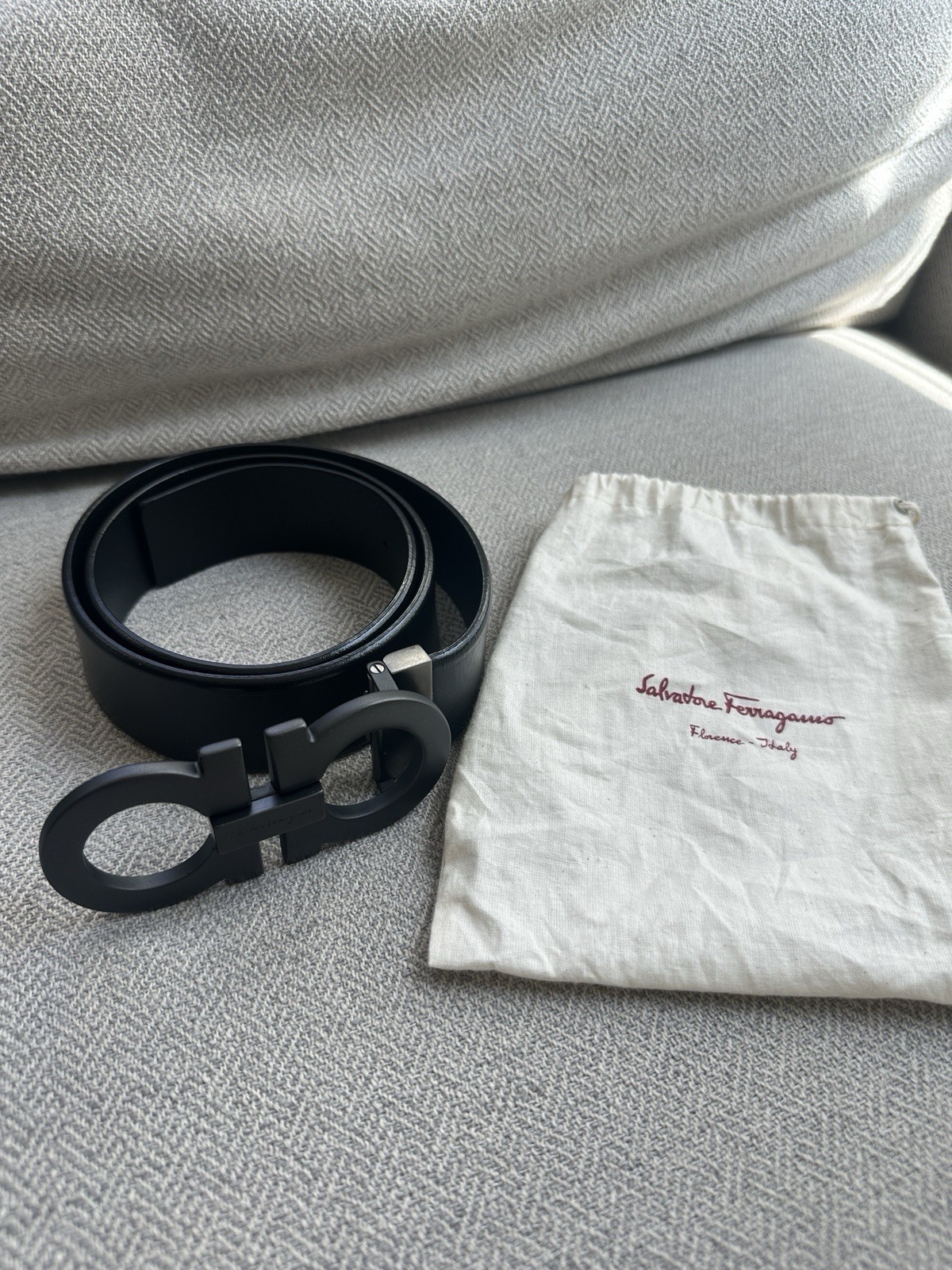как выглядит Ferragamo Black Leather Belt Black Buckle 1.5 Wide Size 90CM фото