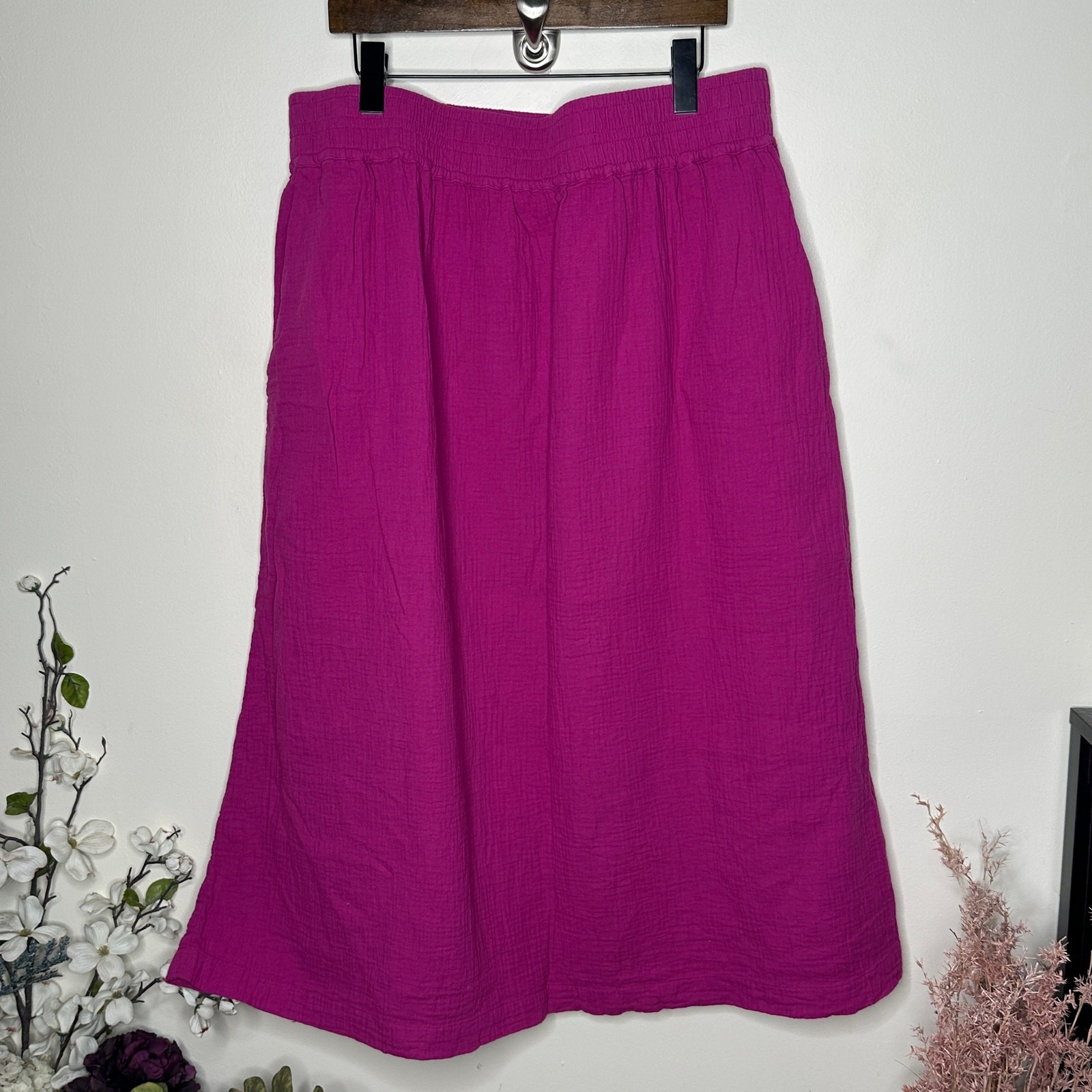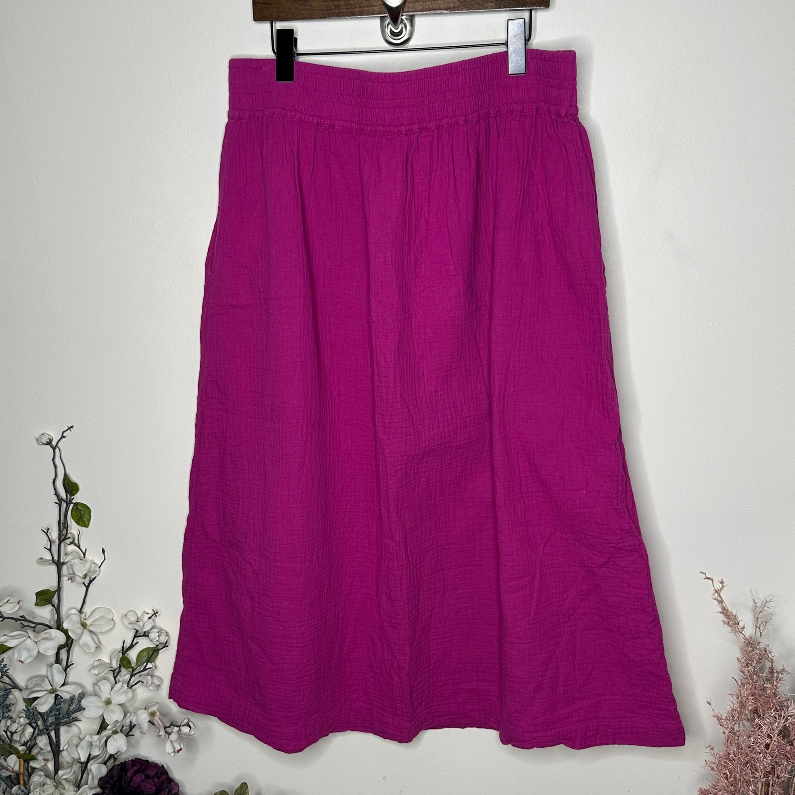 как выглядит BODEN Double Cloth Smocked Midi Skirt Fuchsia Pink Purple Sz 16/18 M52 фото