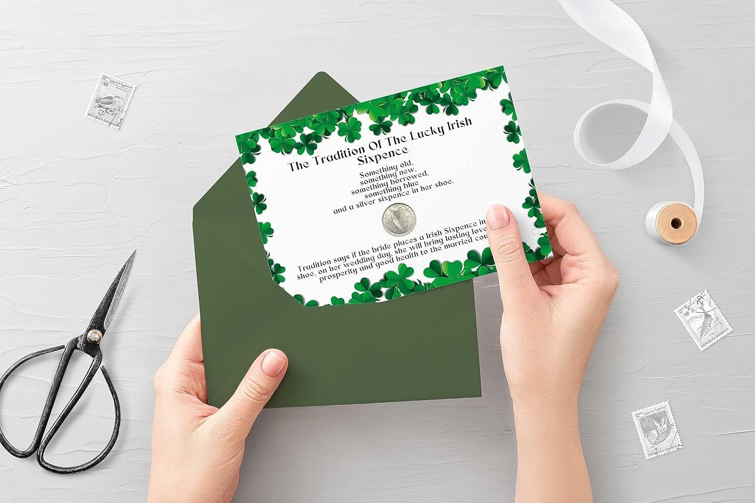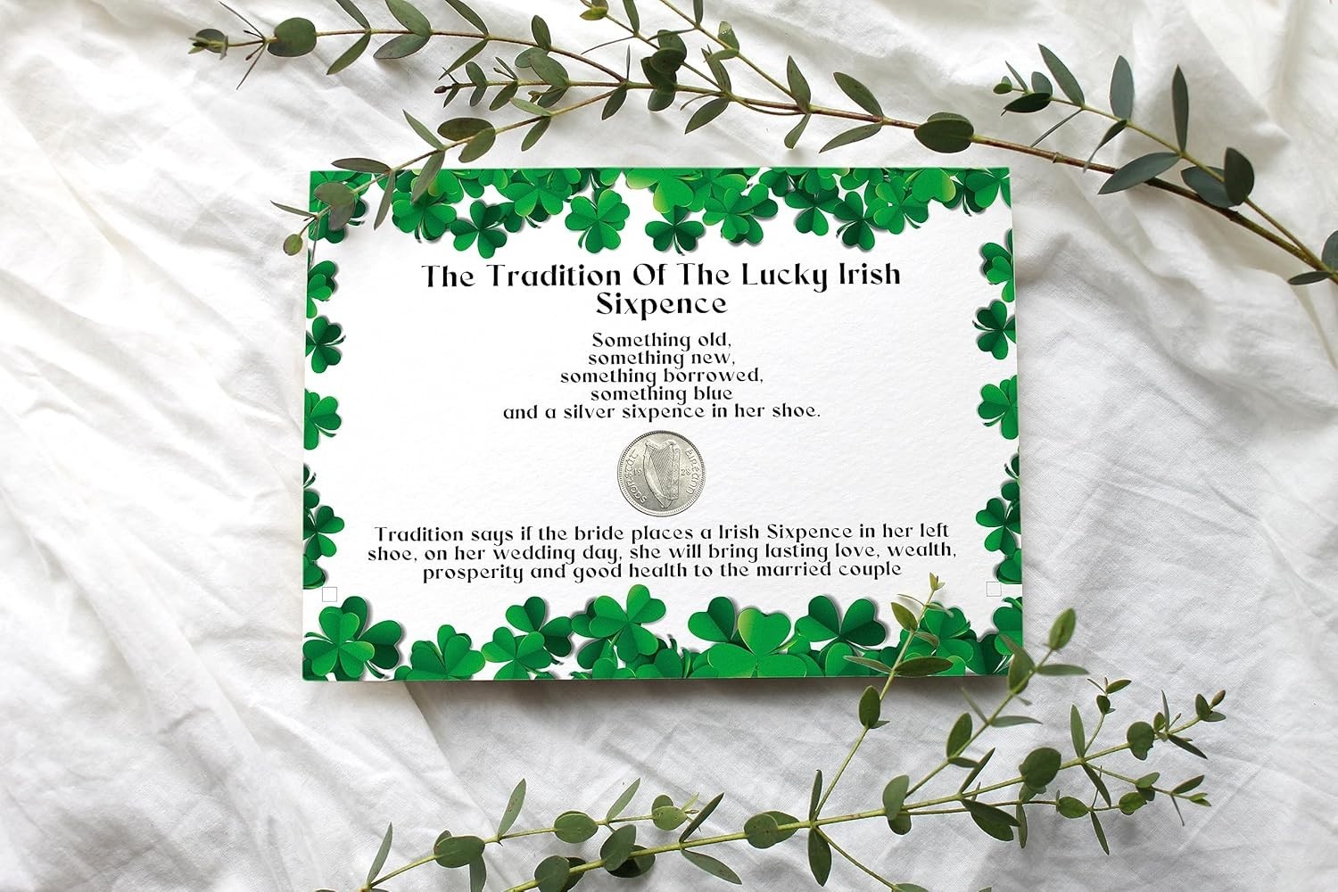 Bride s Sixpence Irish Coin Card Something Old New Borrowed Blue Gift