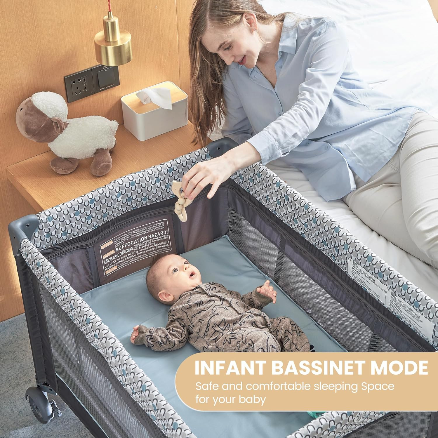 5 in 1 Multifunctional Pack and Play, Foldable Baby Crib with Bassinets,Changing