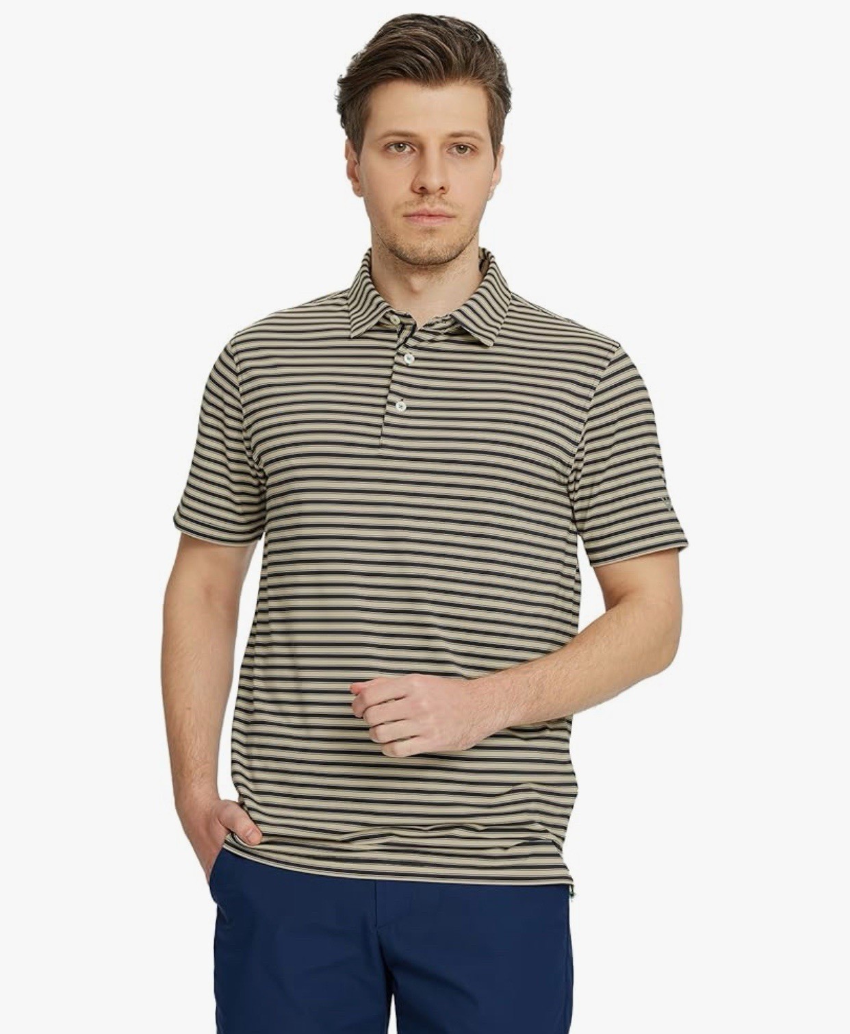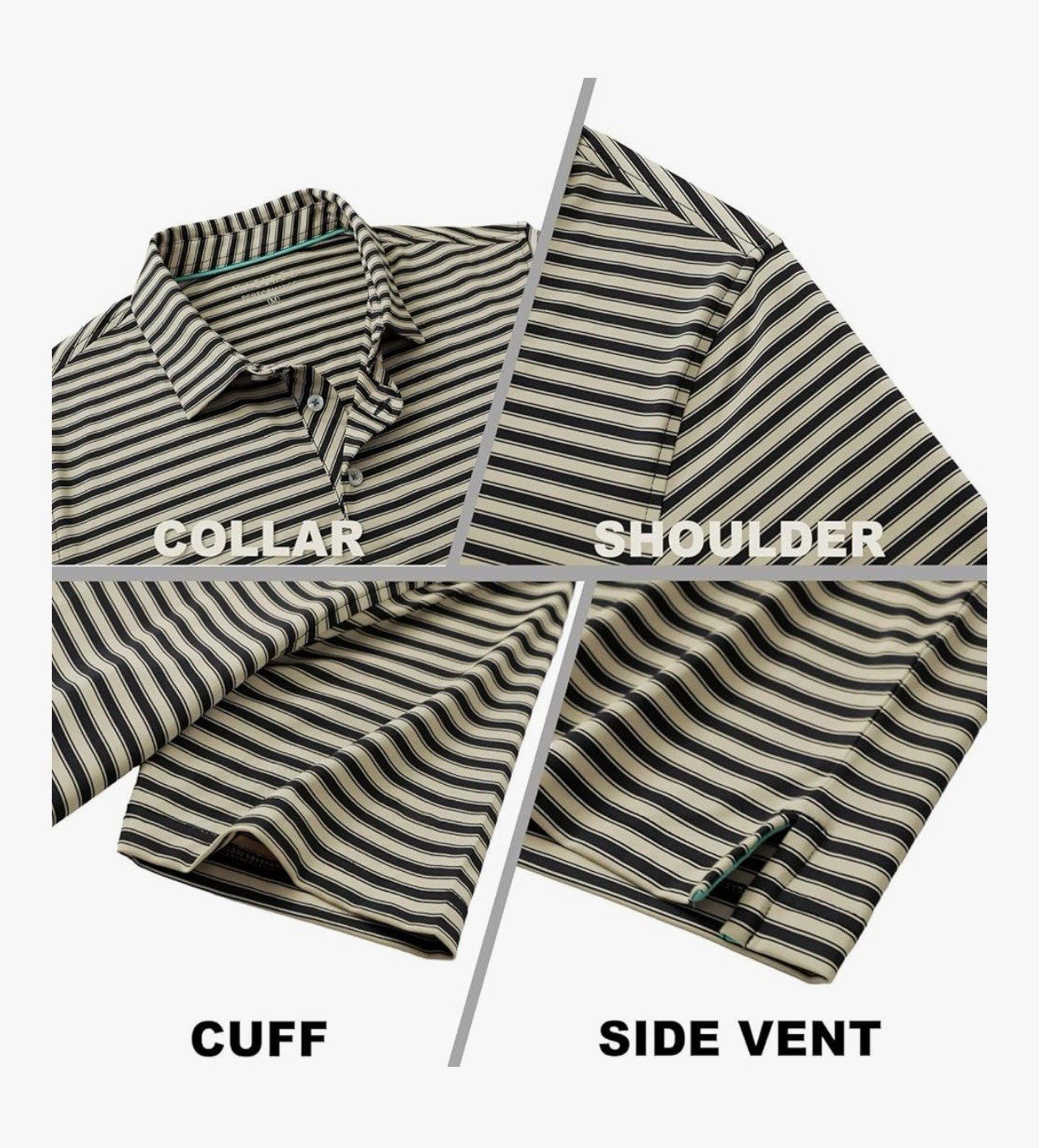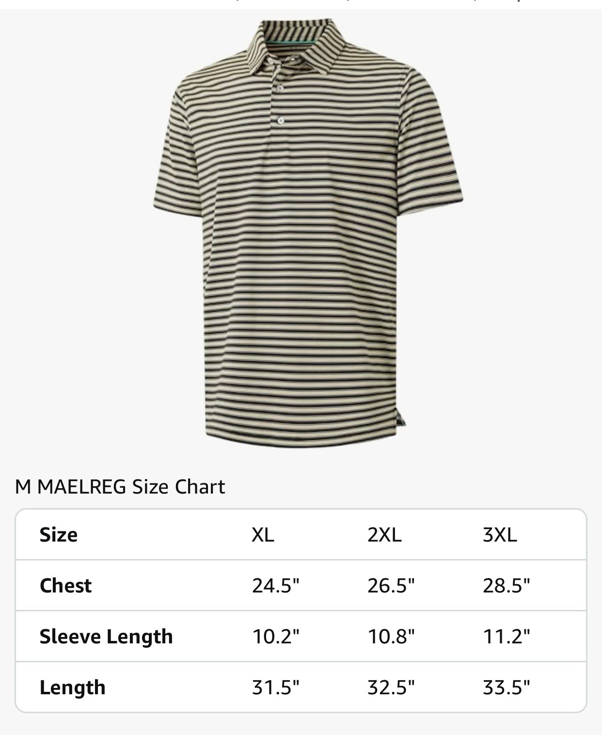 MAELREG Performance Polo Golf Shirt Black And Khaki Striped 3XL New
