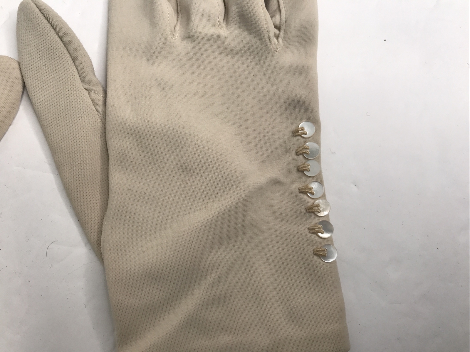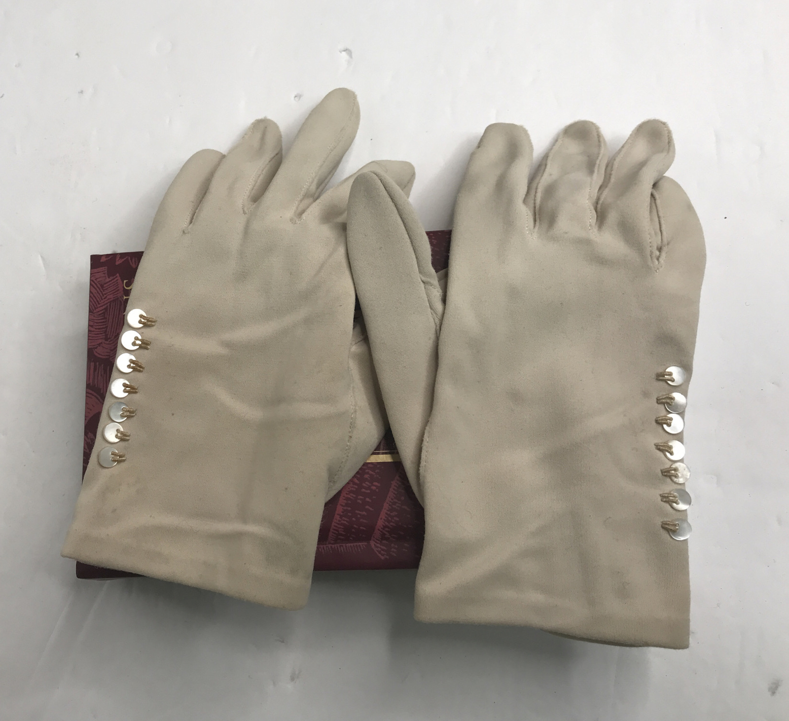 как выглядит VTG MISS ARIS Embellished Antique White Gloves Nylon Fits S/M Size фото