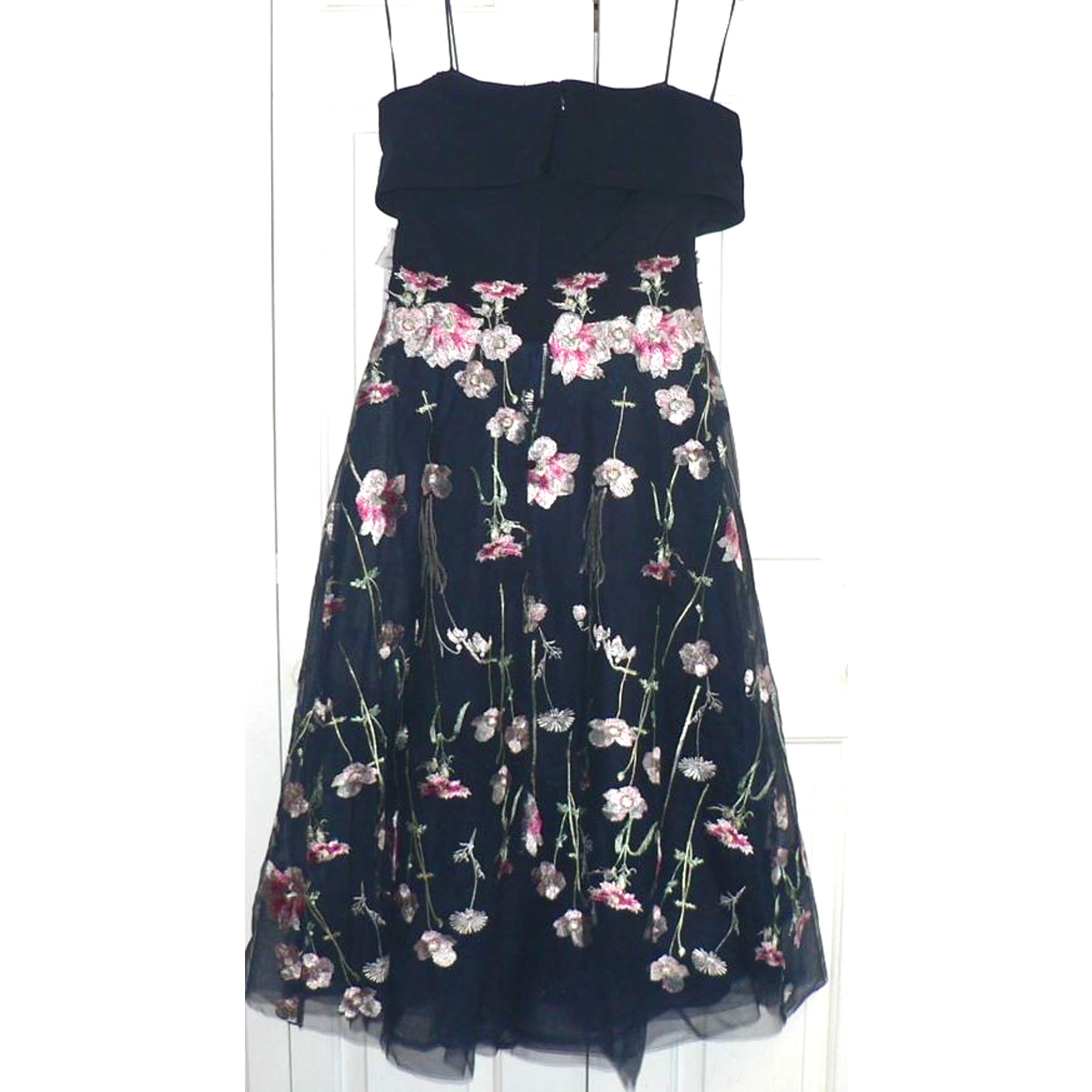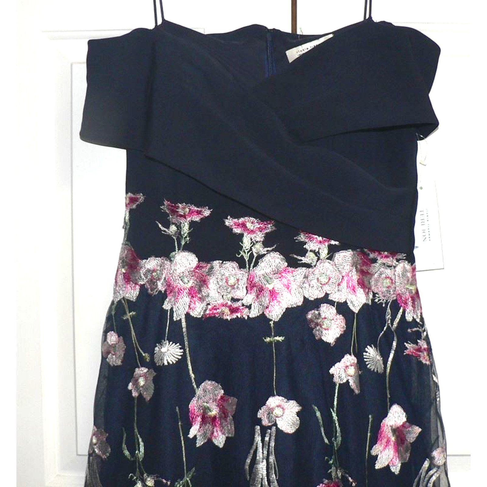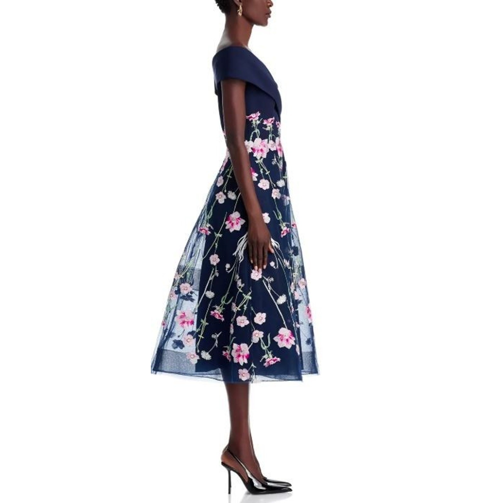 как выглядит Teri Jon by Rickie Freeman Crepe Off-the-Shoulder Embroidered Tulle Dress 10 фото