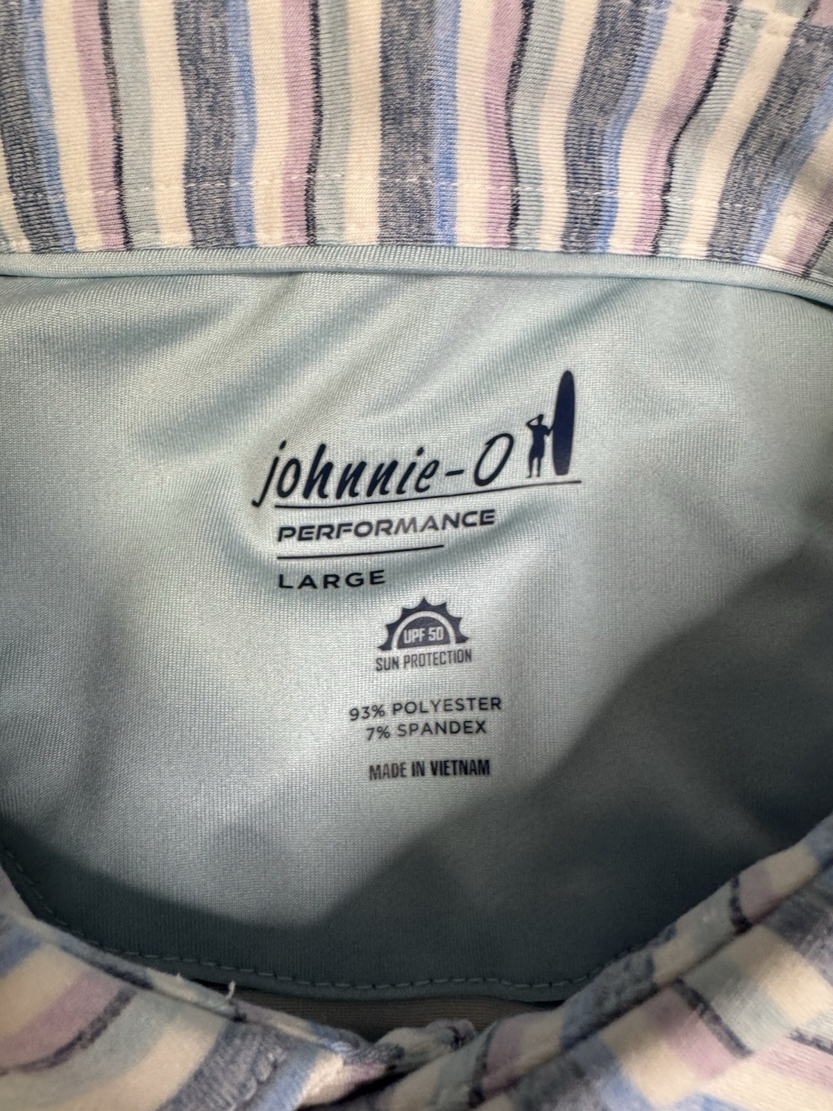 Mens Johnnie-O Performance UPF 50 Polo Shirt Size Large Striped Golf Stretch