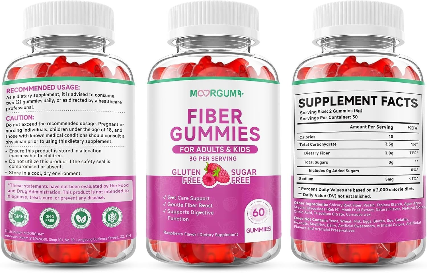 Fiber Gummies for Digestive Health Regularity, Sugar-Free High Fiber Supple...
