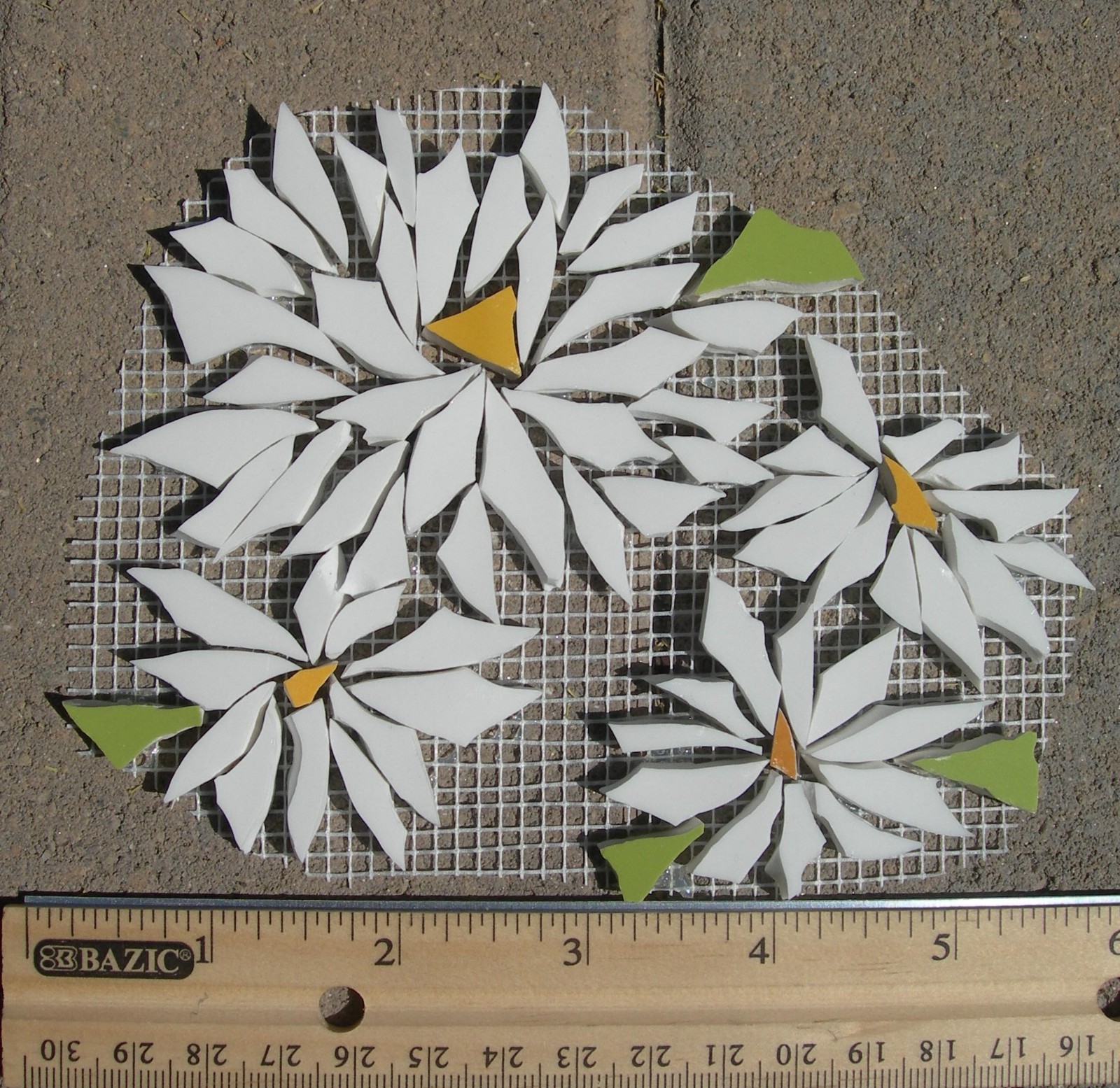 Floral Mosaic Tiles, Turquoise White Daisy Aster Craft Tile -Table Top Mosaic