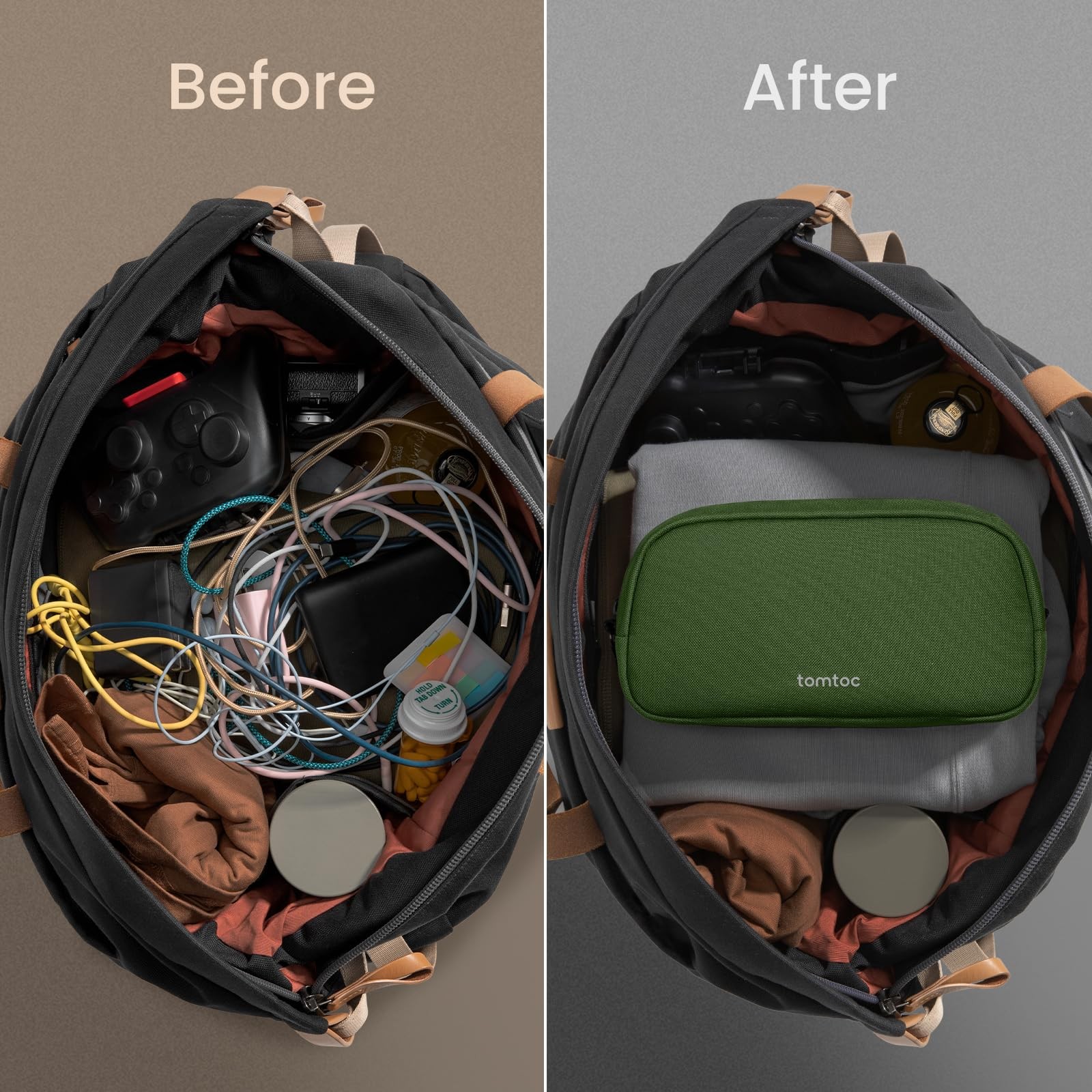 tomtoc Electronics Organizer Travel Case, Water Resistant Small, Green