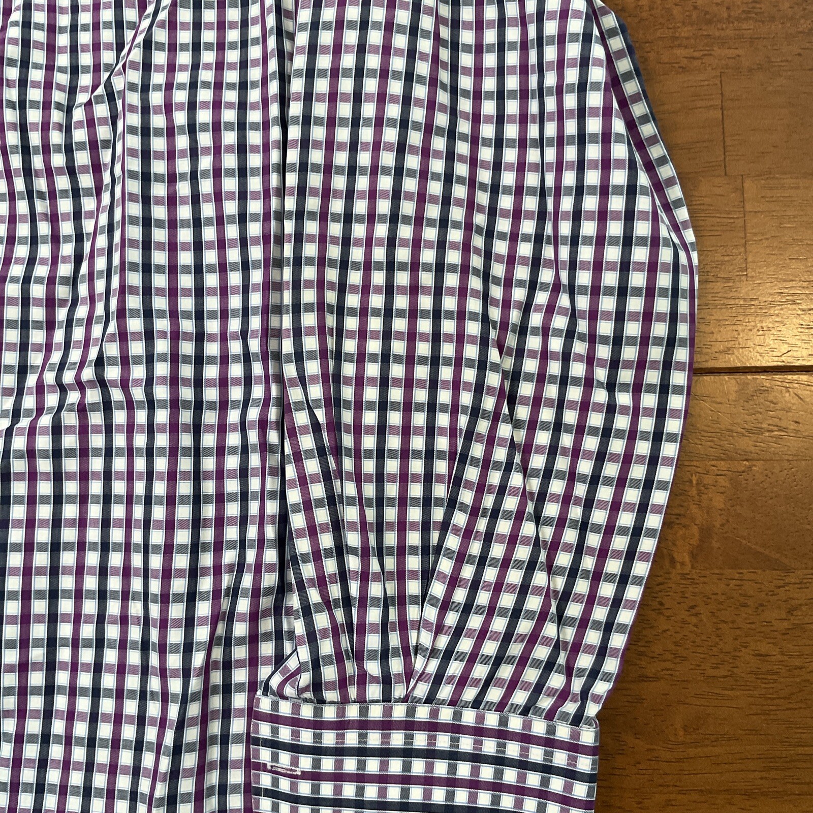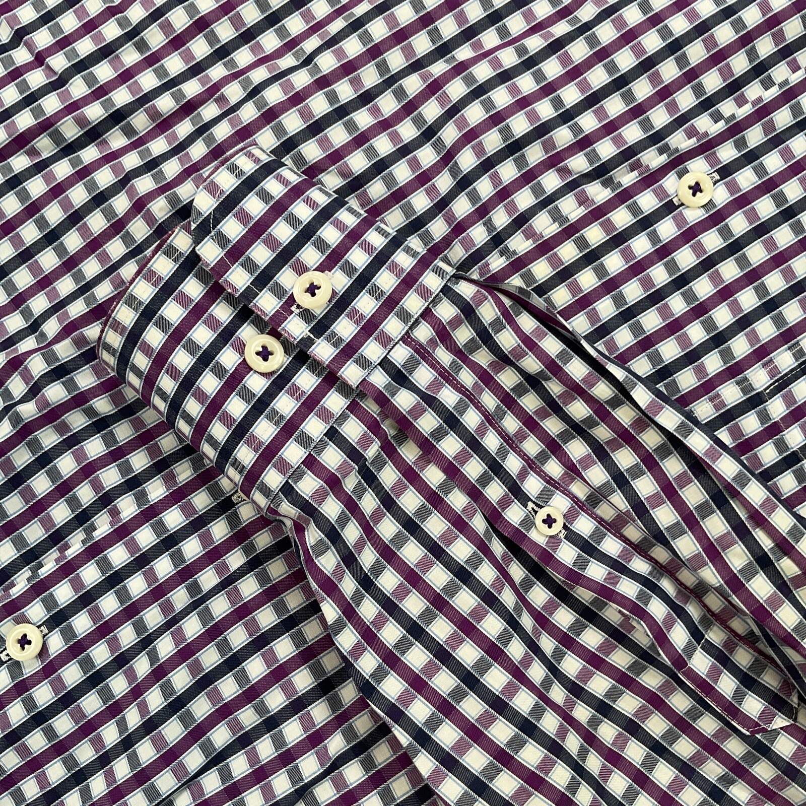 Peter Millar Men's L Shirt Blue Purple Plaid Long Sleeve Button Down Collared