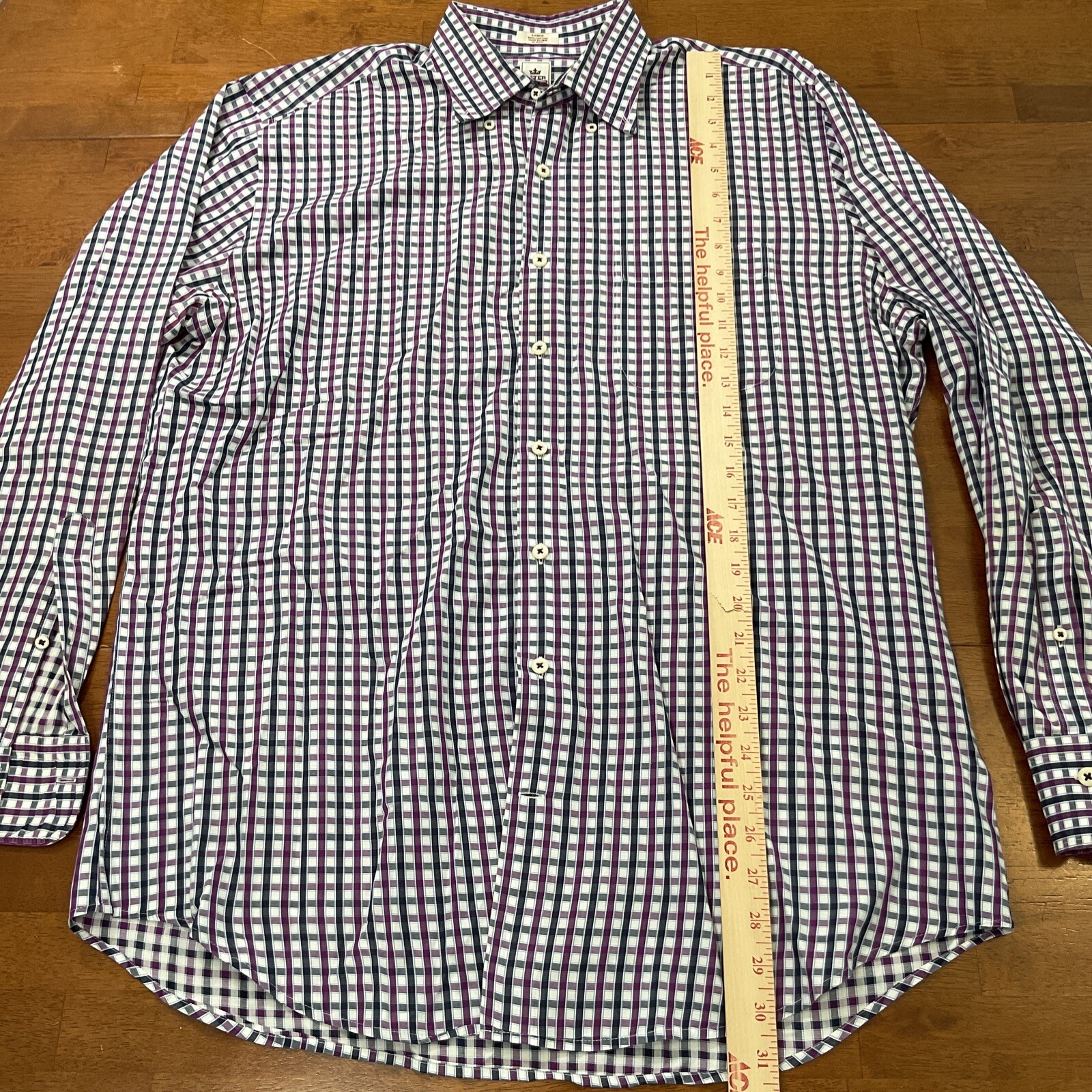 как выглядит Peter Millar Mens L Shirt Blue Purple Plaid Long Sleeve Button Down Collared фото