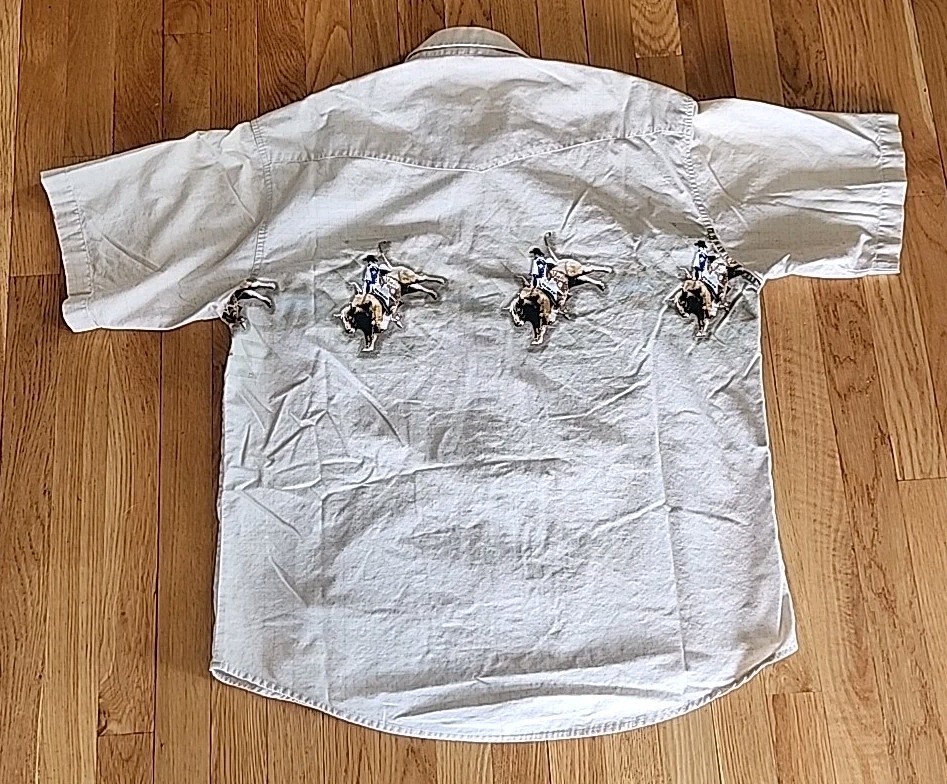 Wrangler Rodeo PBR Cowboy Western Pearl Snap Mens Button Up Shirt Size XL Tan
